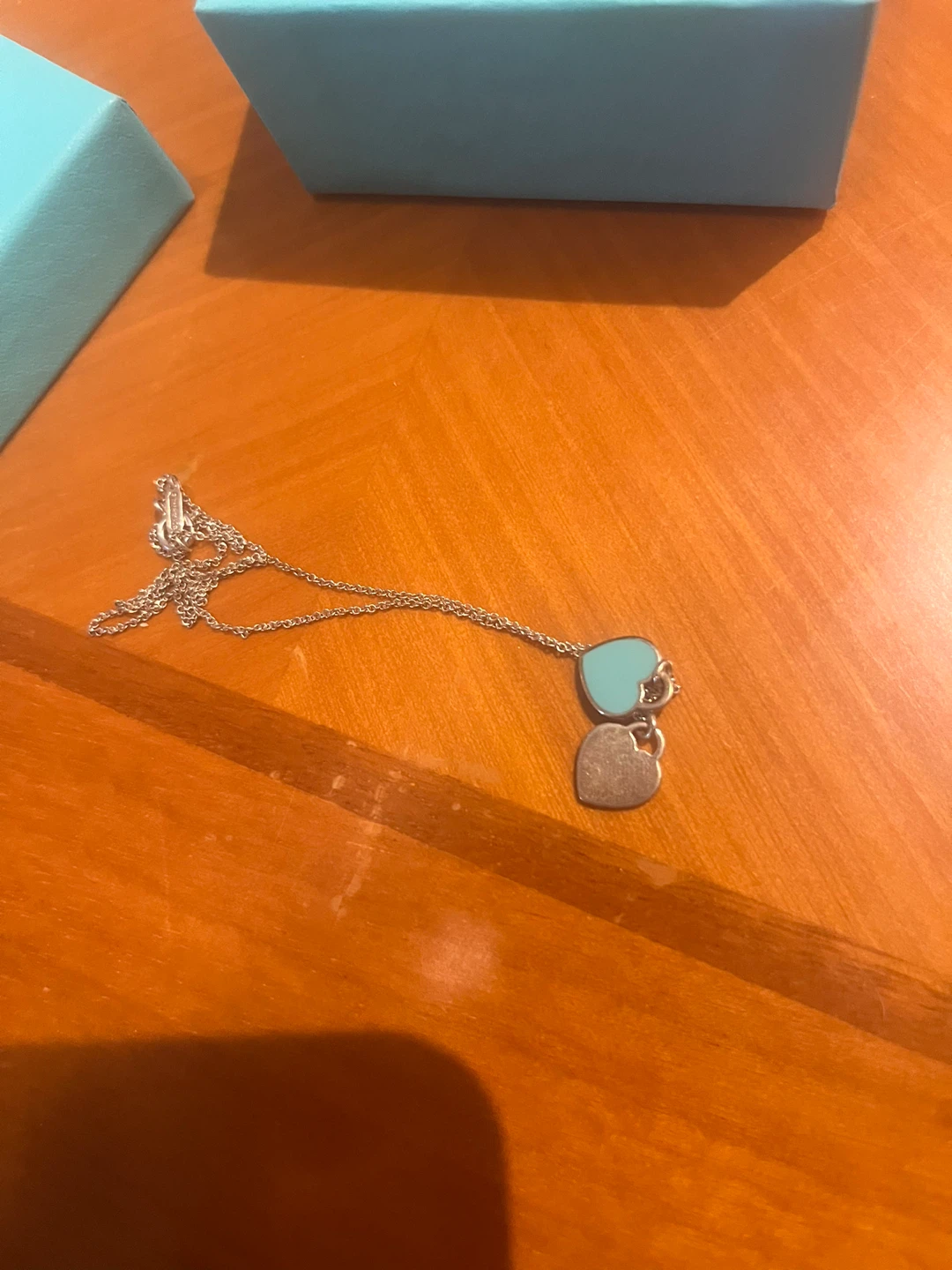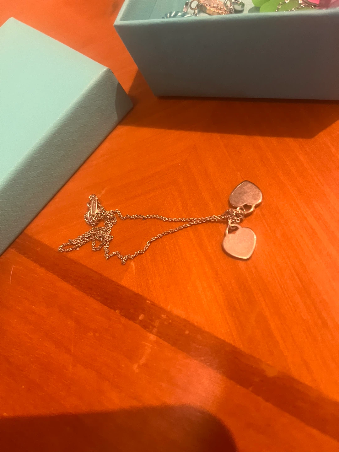 💚authentic Tiffany & Co. Double Heart Tag Pendant Necklace