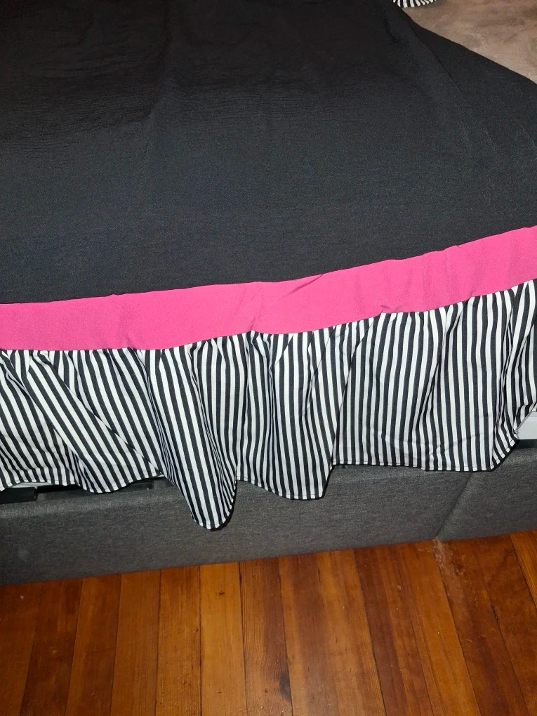Black Dress with Striped & Pink Trim
