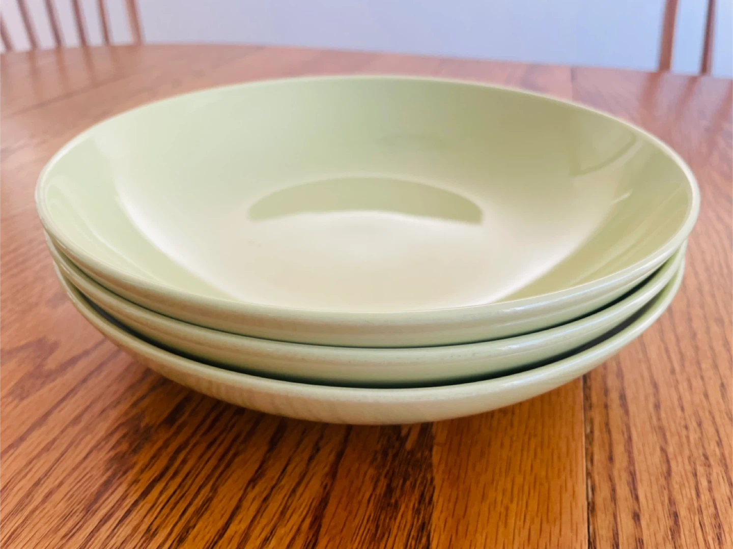 Selling a set of IKEA pasta bowls in a lovely light green colour! They measure approximately 24cm in diameter. Perfect for pasta, salads, or any meal you fancy