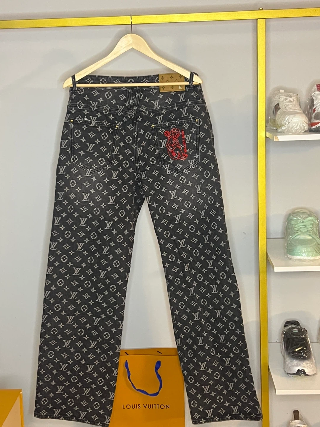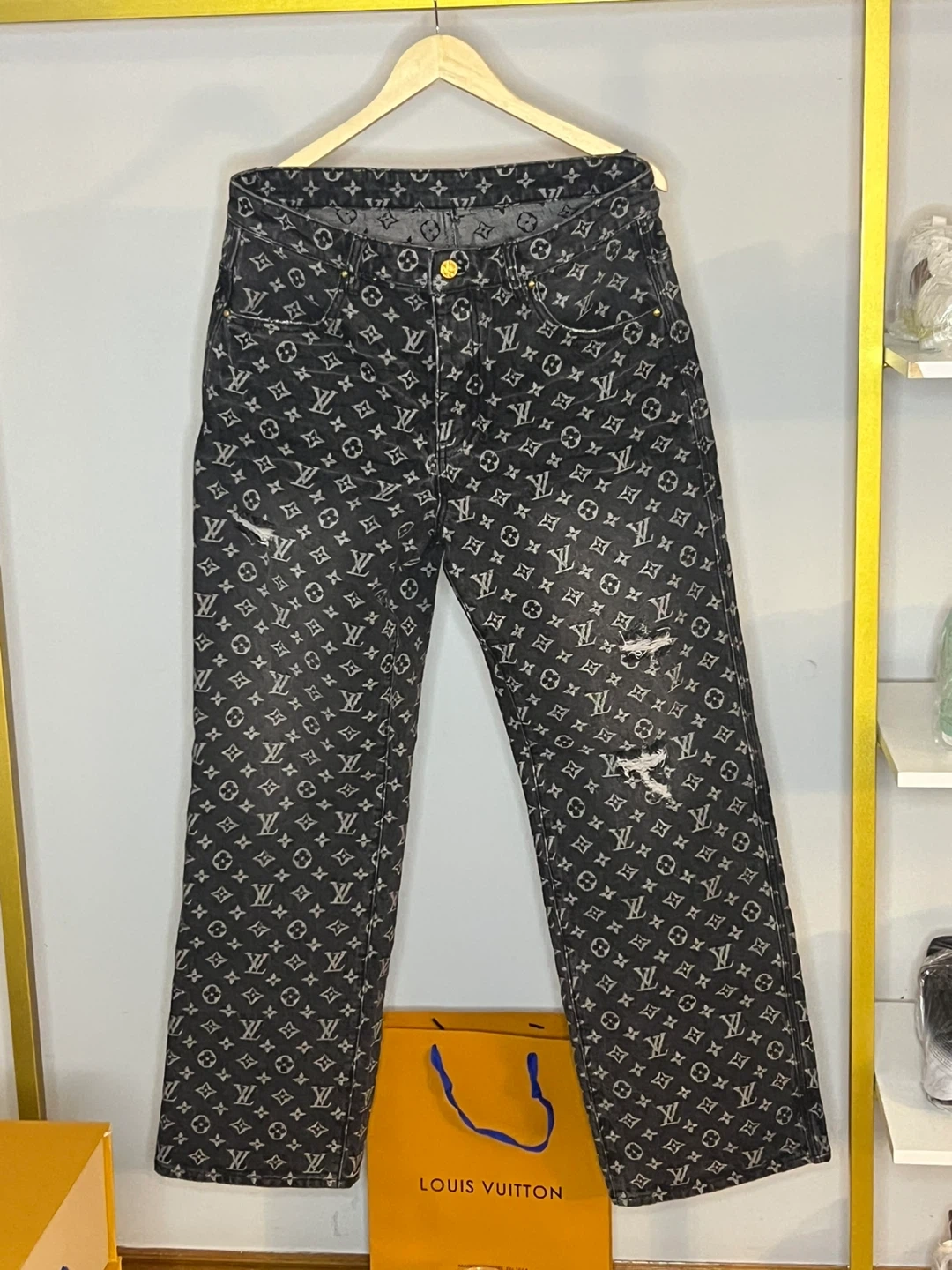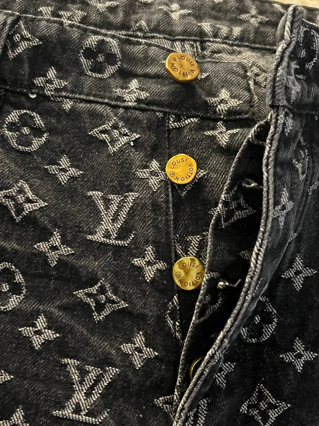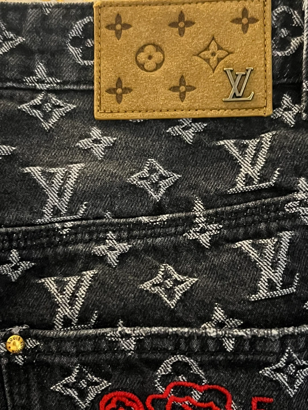 Selling a Top quality - pair of Louis Vuitton monogram denim feature the iconic LV monogram pattern throughout. Perfect for adding a touch of luxury to your wardrobe!