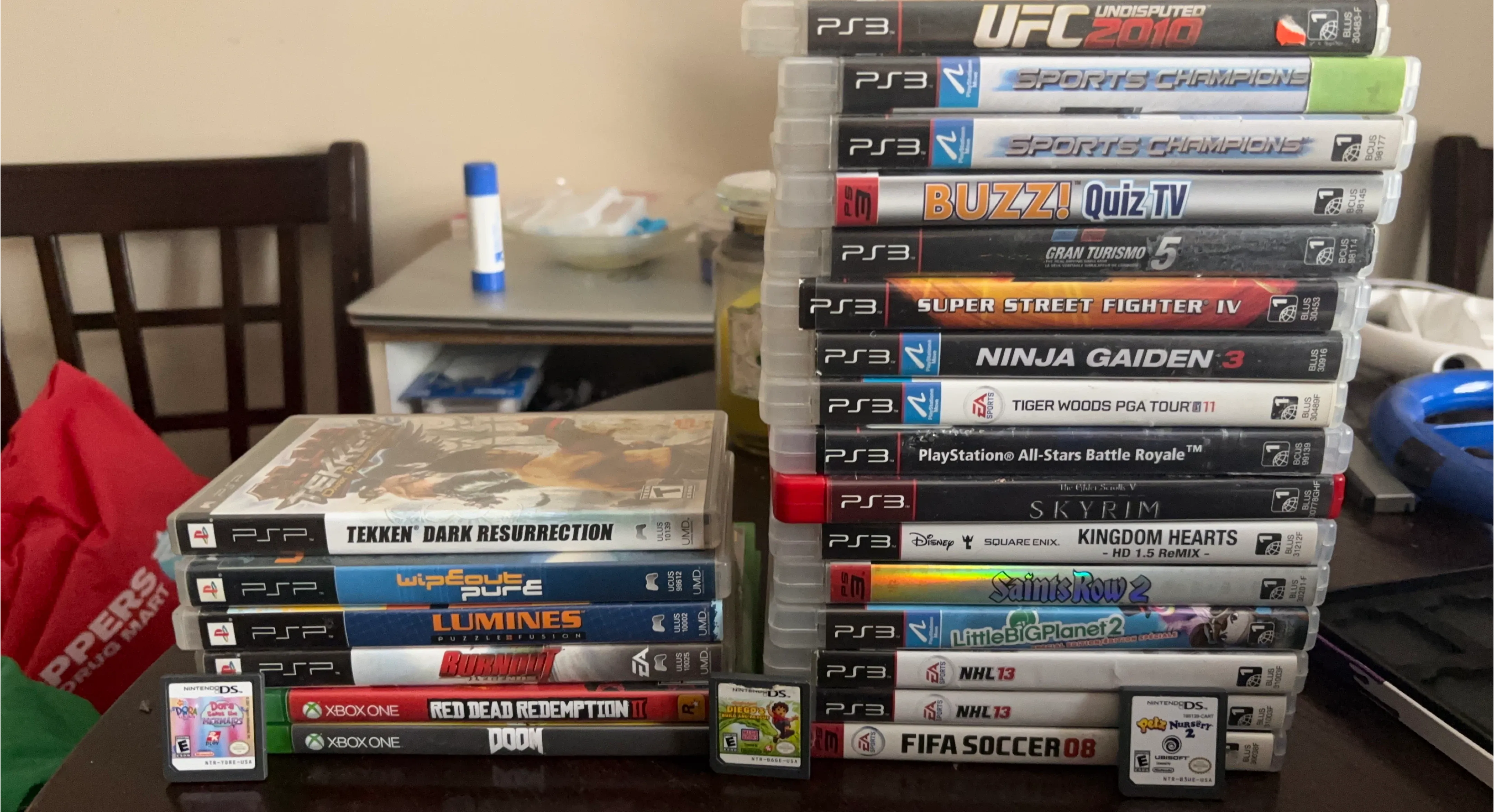 Selling a collection of games for various consoles! Includes titles for PS3, PSP, Nintendo DS, and Xbox One. Great for expanding your game library or reliving some classics