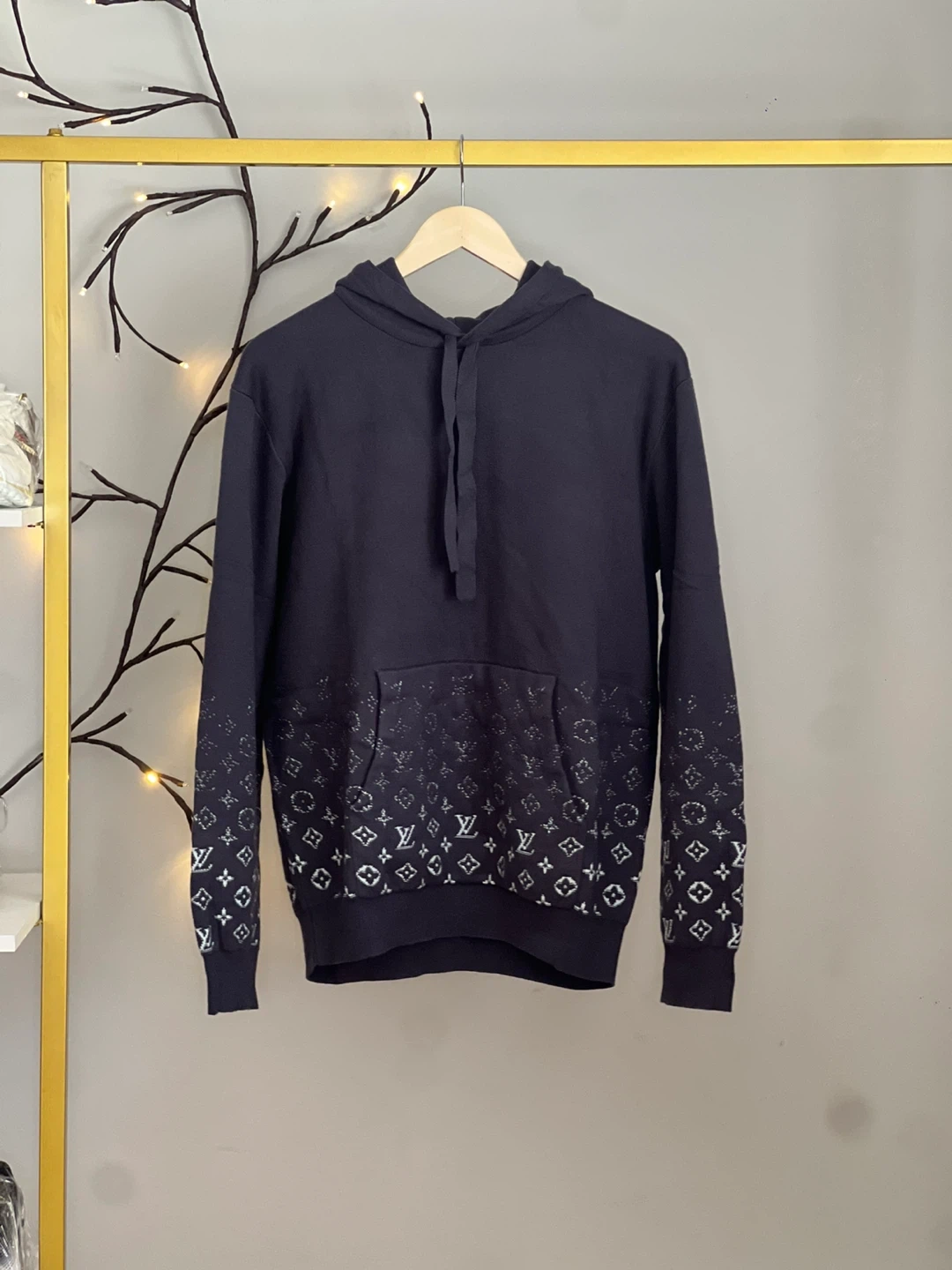 Selling a Too quality stylish Louis Vuitton hoodie in black with a monogram gradient design. This hoodie is perfect for adding a touch of luxury to your casual wear. The material feels great and it’s super comfy for everyday wear!