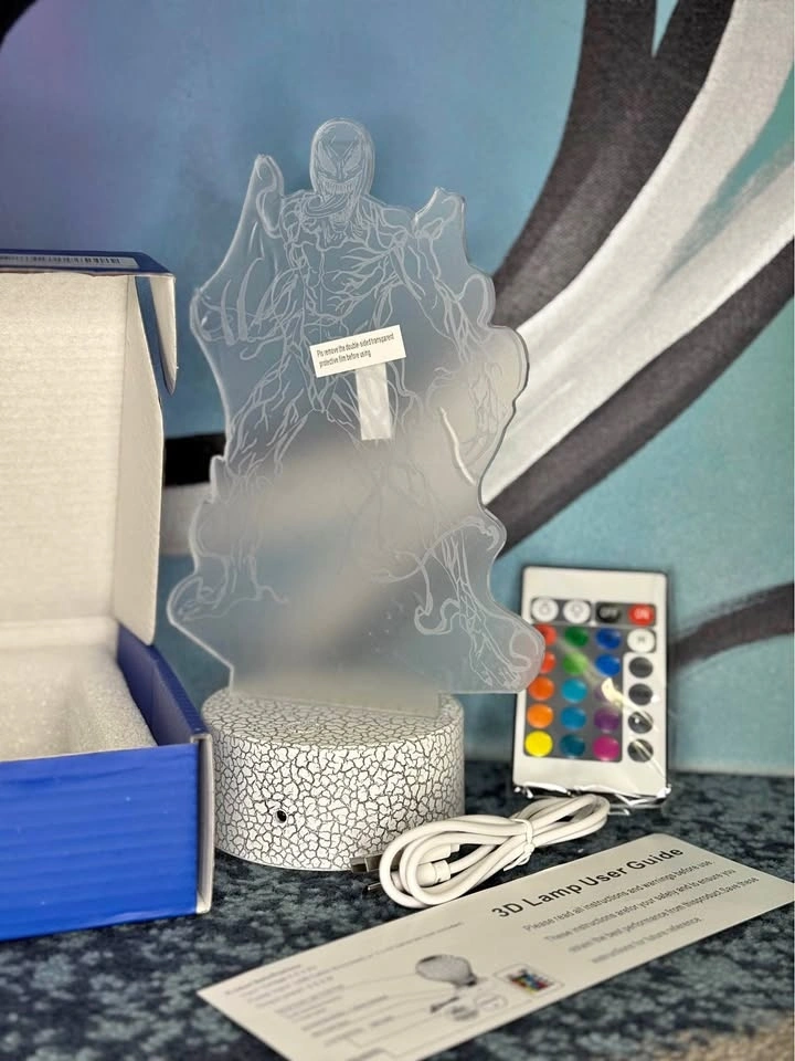 Light up your space with this 3D illusion night lamp featuring a design inspired by Carnage/Venom. With a cracked-base effect and vivid lighting options, itβs perfect for a bedroom, gaming setup, or collectorβs display.