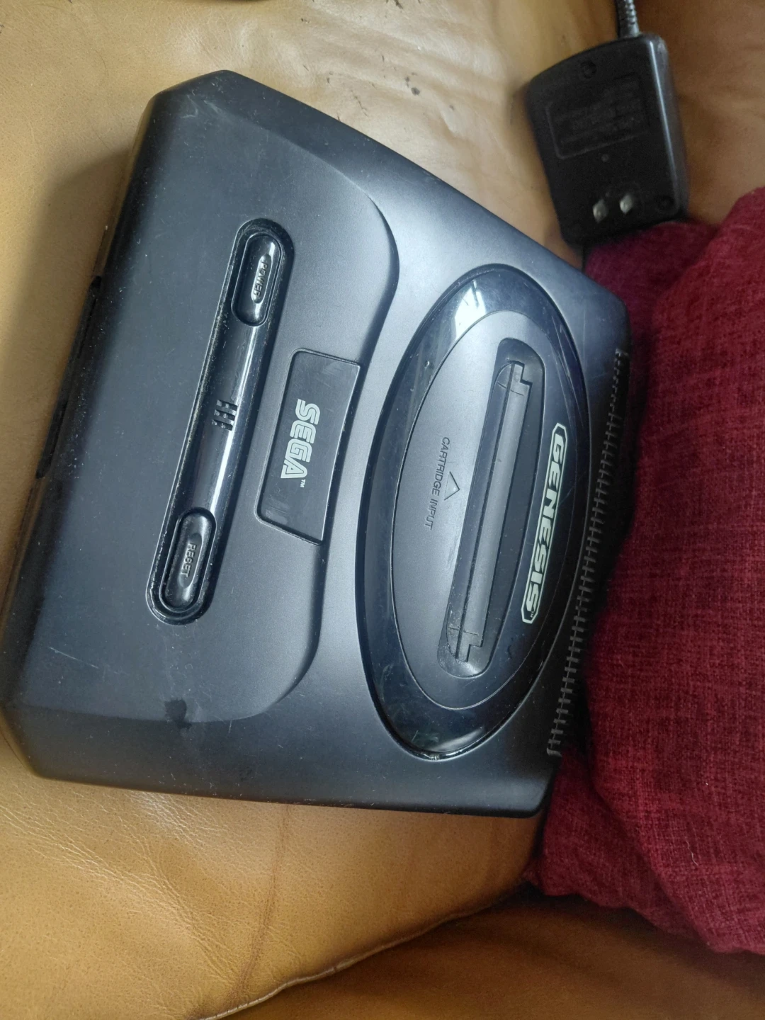 Selling a Sega Genesis console with a Sonic the Hedgehog game cartridge! It comes with the power adapter and controller so you can get right into playing. There are some scratches on the console, but it is still fully functional.