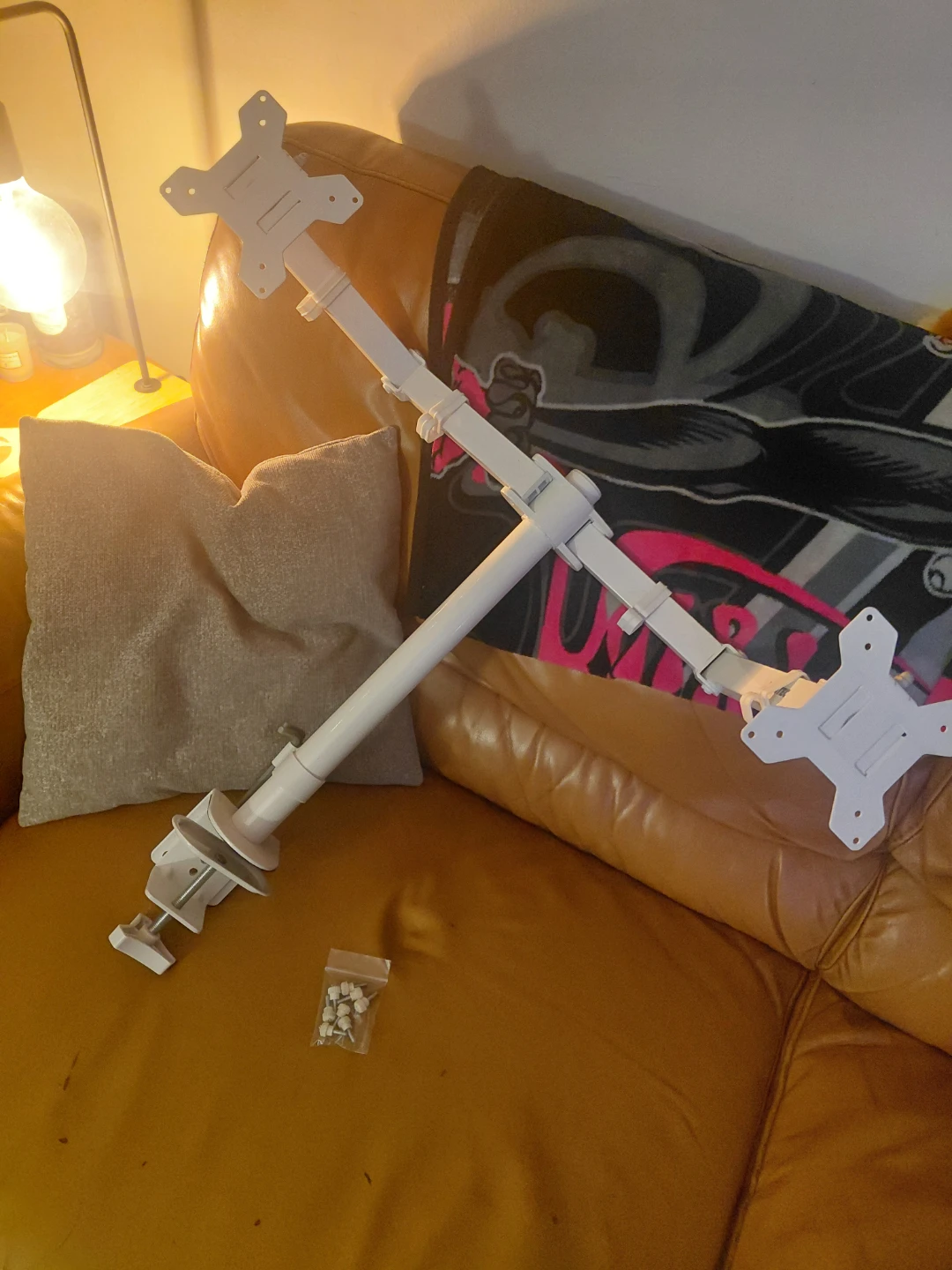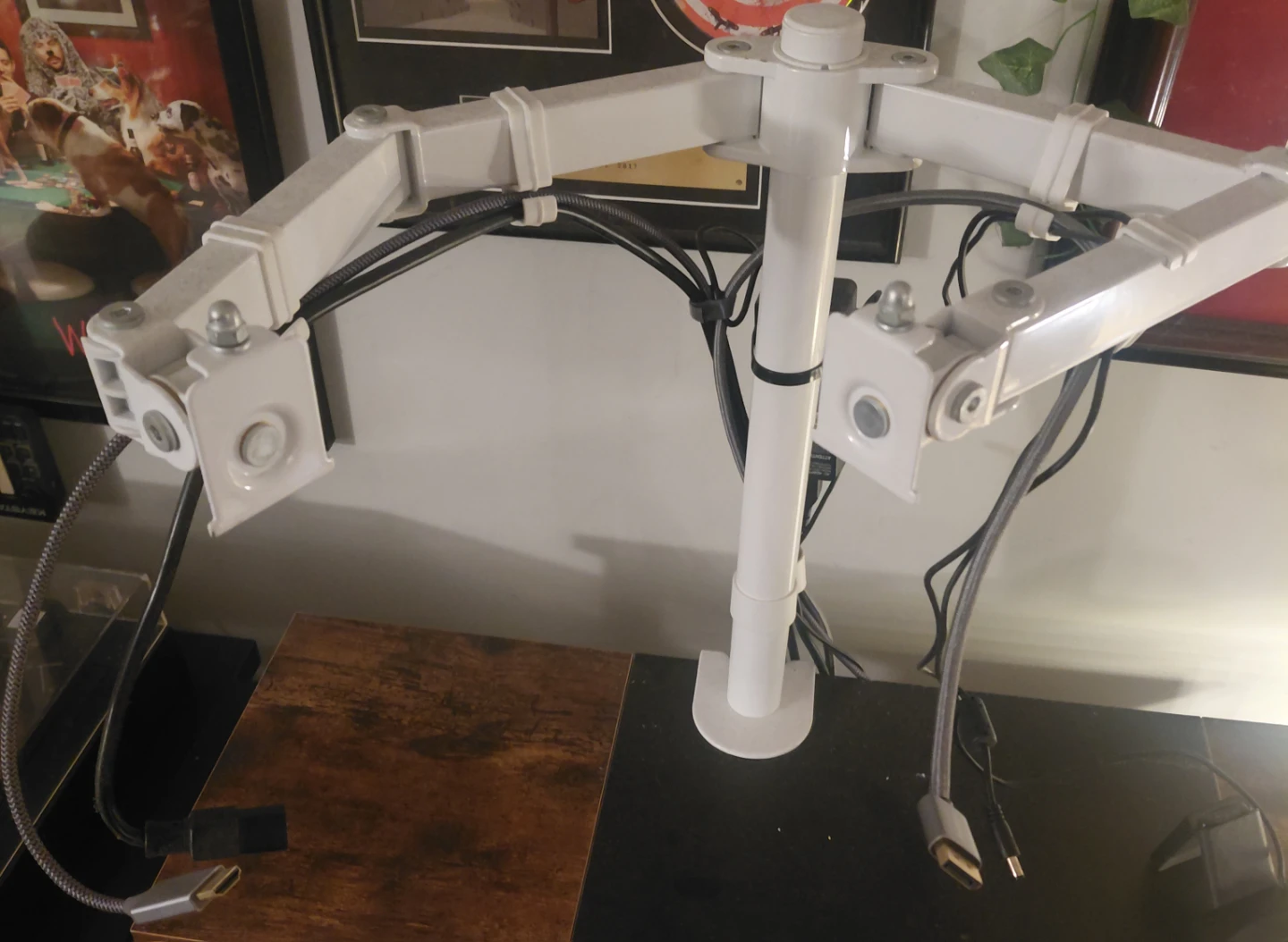 works fantastic. had two monitors mounted side by side but downsizing everything so looking to let this go.