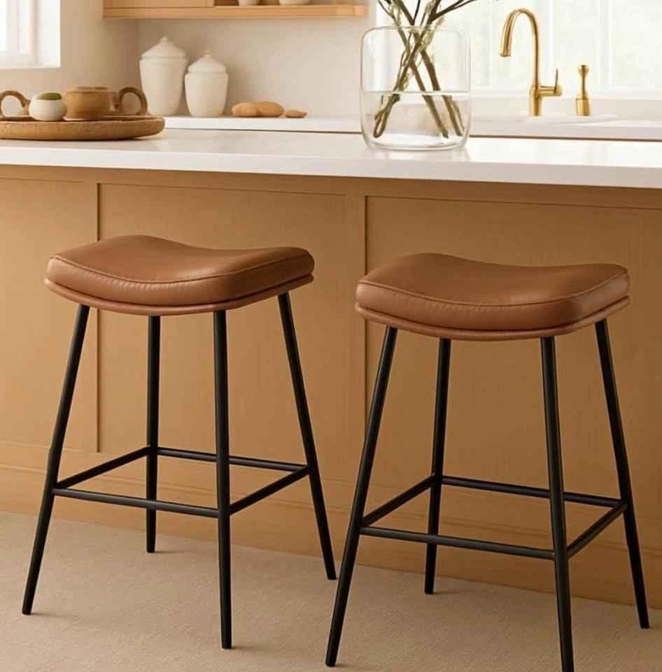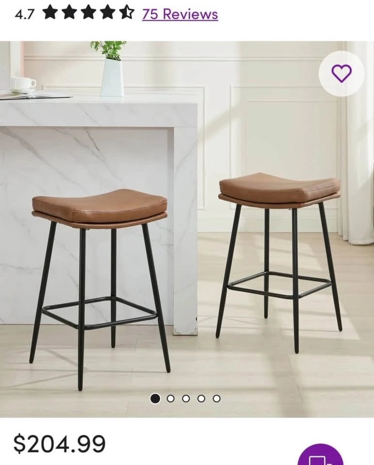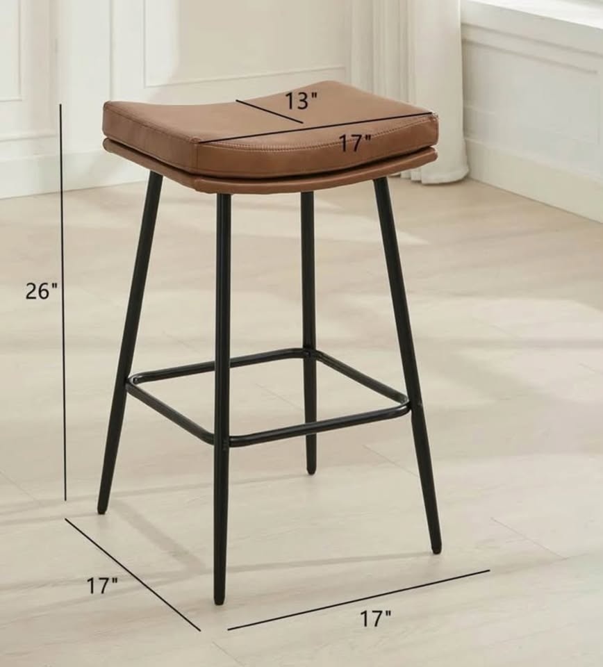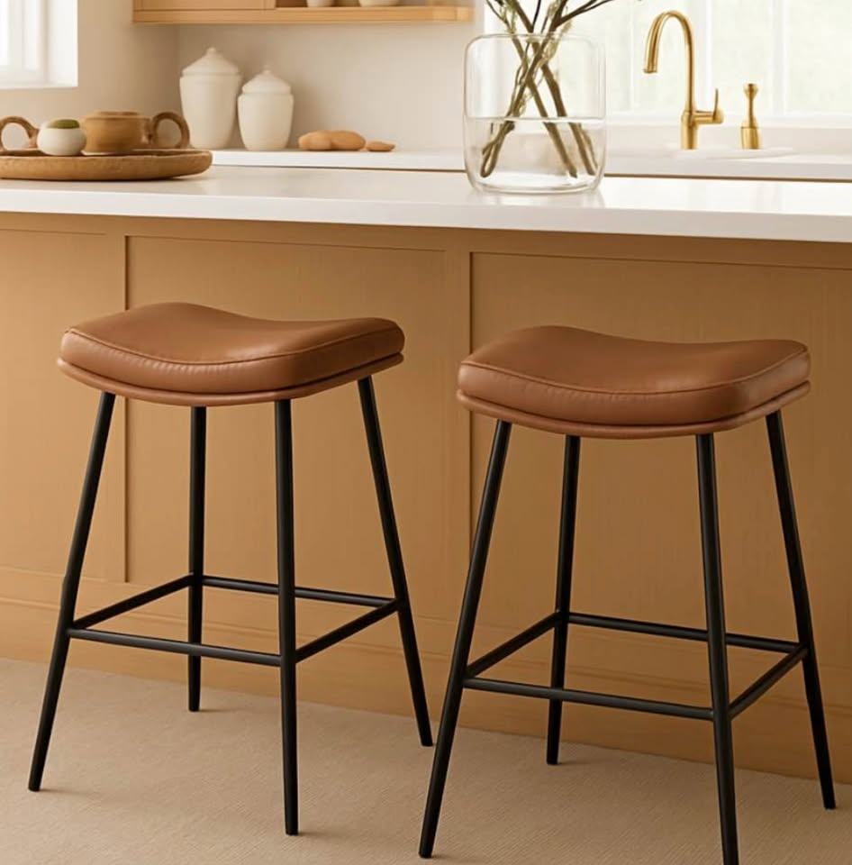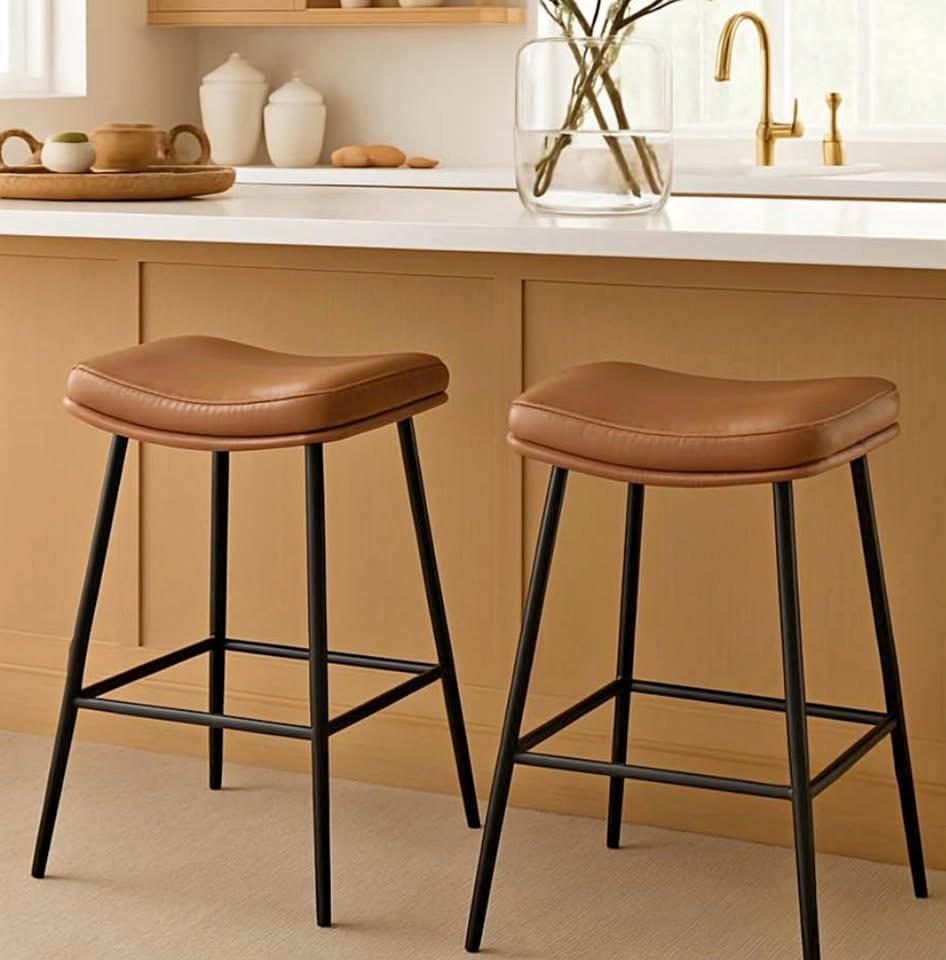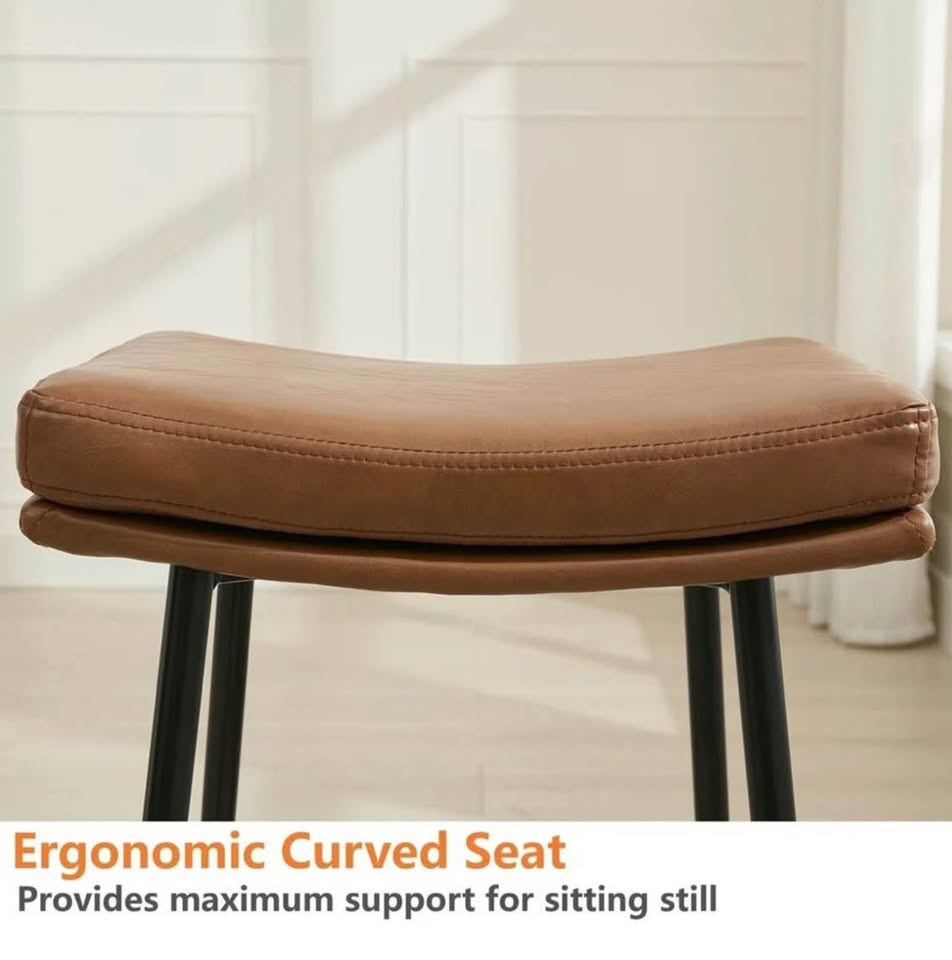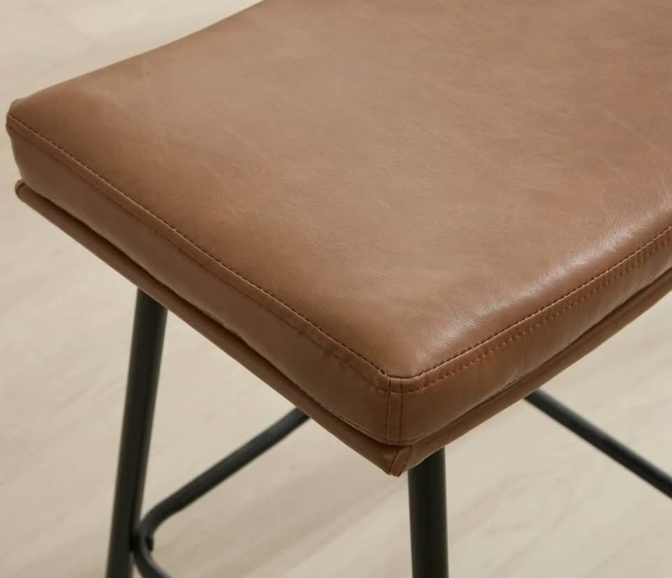 Beautiful set of mid century modern (MCM) inspired vegan leather counter height stools, brand new in box. Price is for the set of 2.