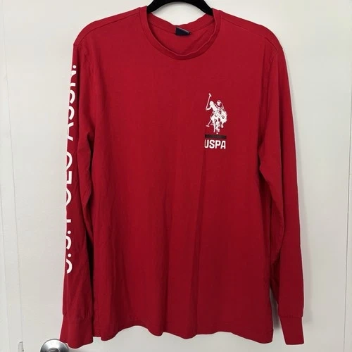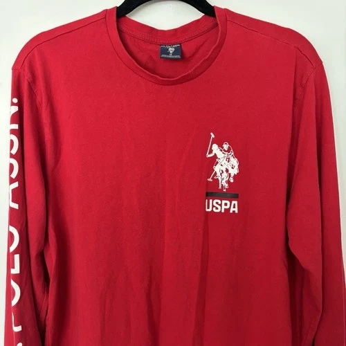 Vintage US Polo Assn Shirt Mens M Red Long Sleeve Dble Rider Logo Spell Out Y2K