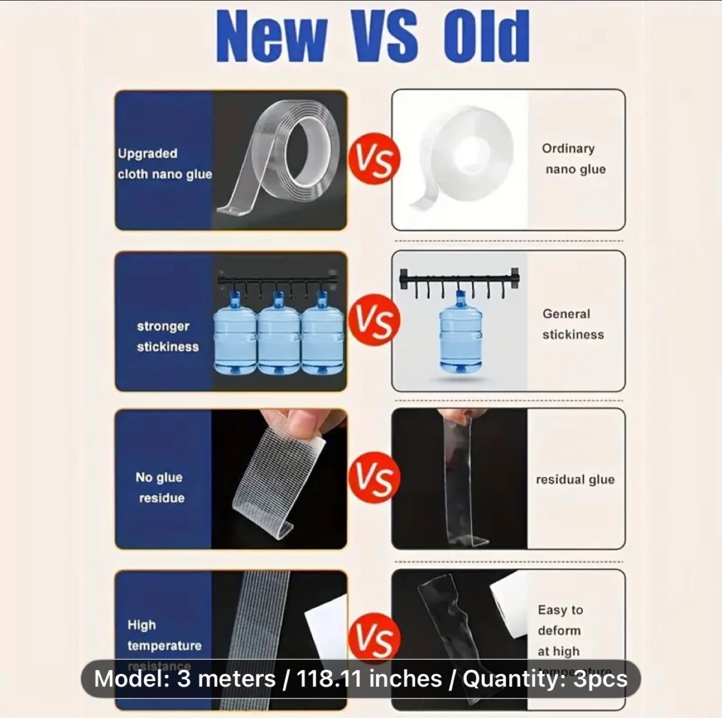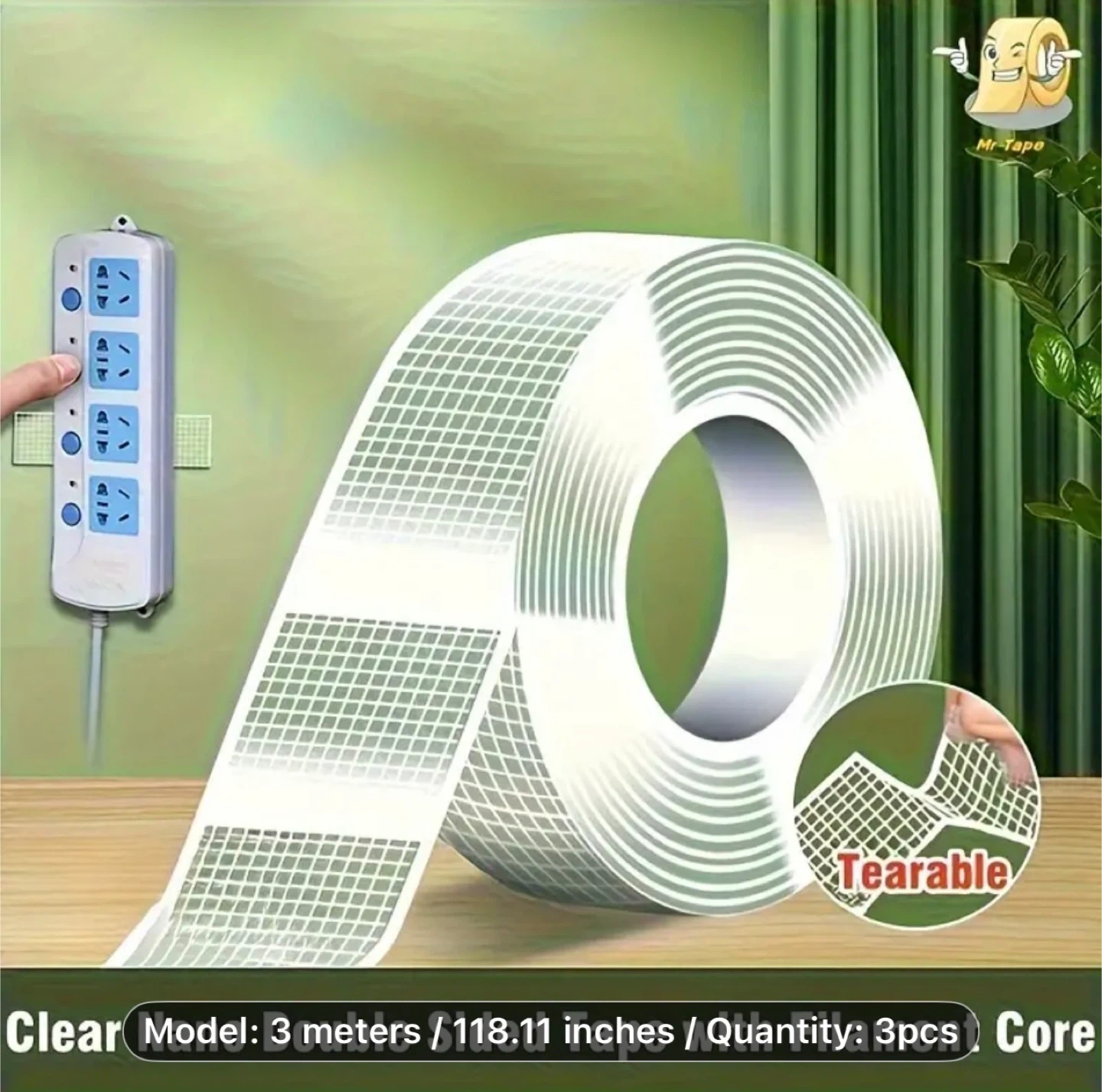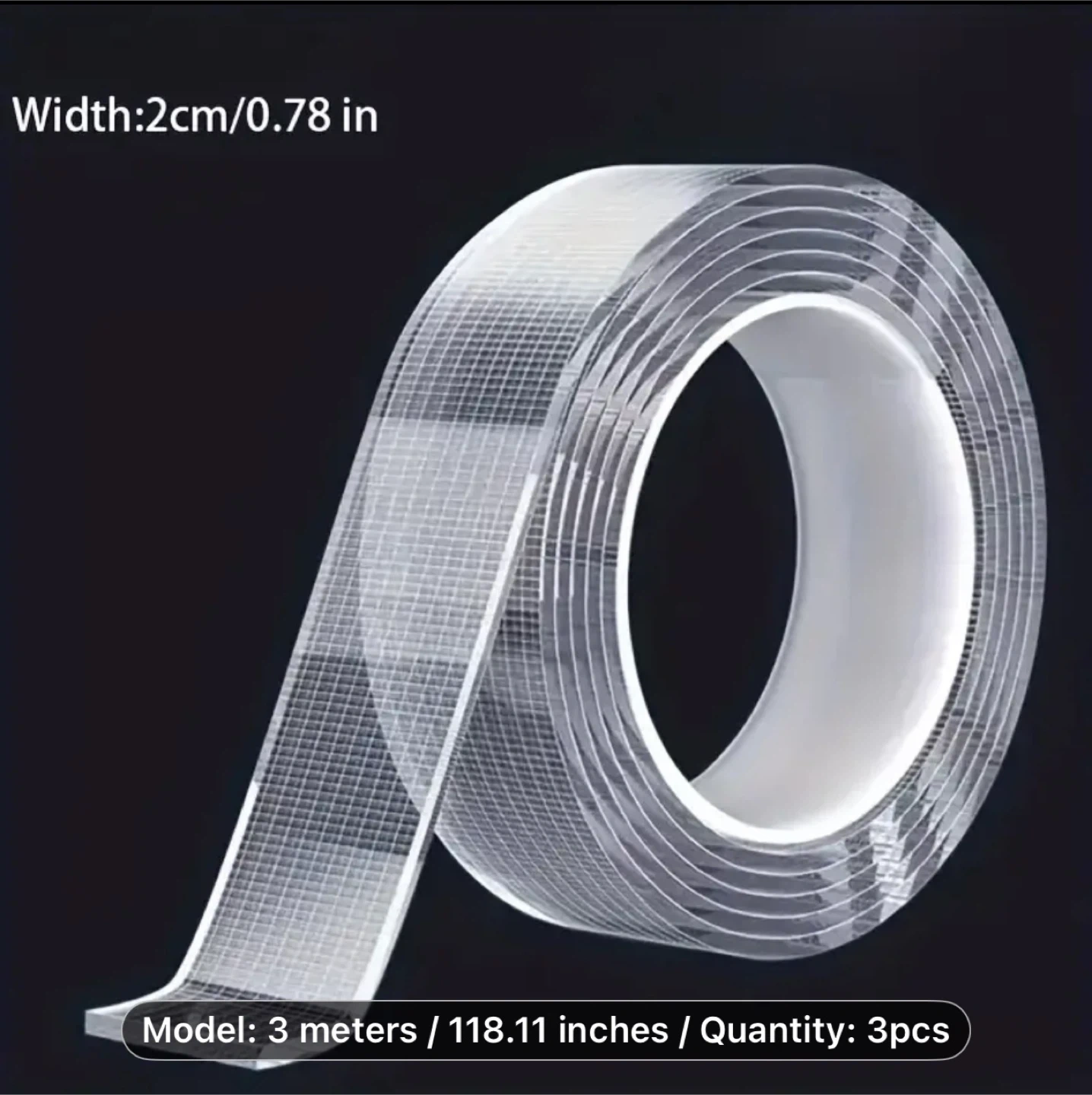 Three Powerful Double-Sided Nano Tapes, Transparent And Removable, Suitable for Heavy-Duty Installations, Made of PE Material, Can Support a Weight of 2.2 LB.