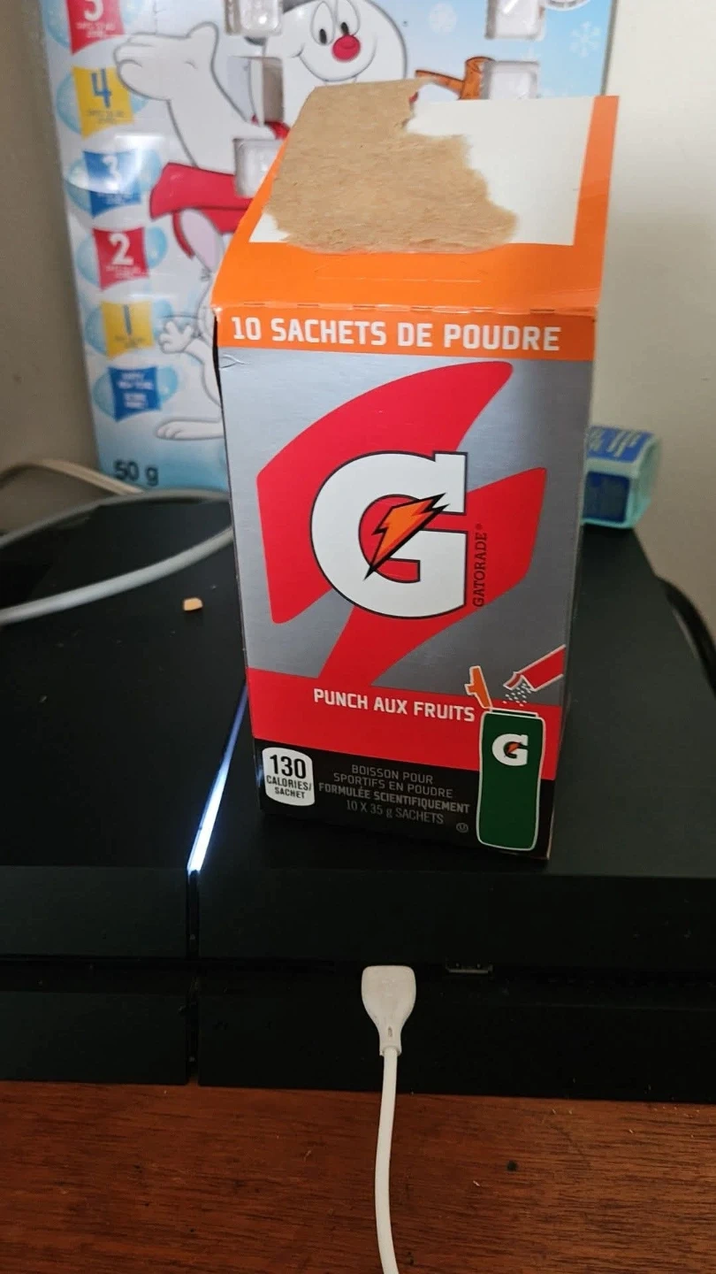 Selling a box of Gatorade fruit punch powder sachets. Each sachet contains 130 calories. Perfect for athletes looking for a scientifically formulated sports drink!