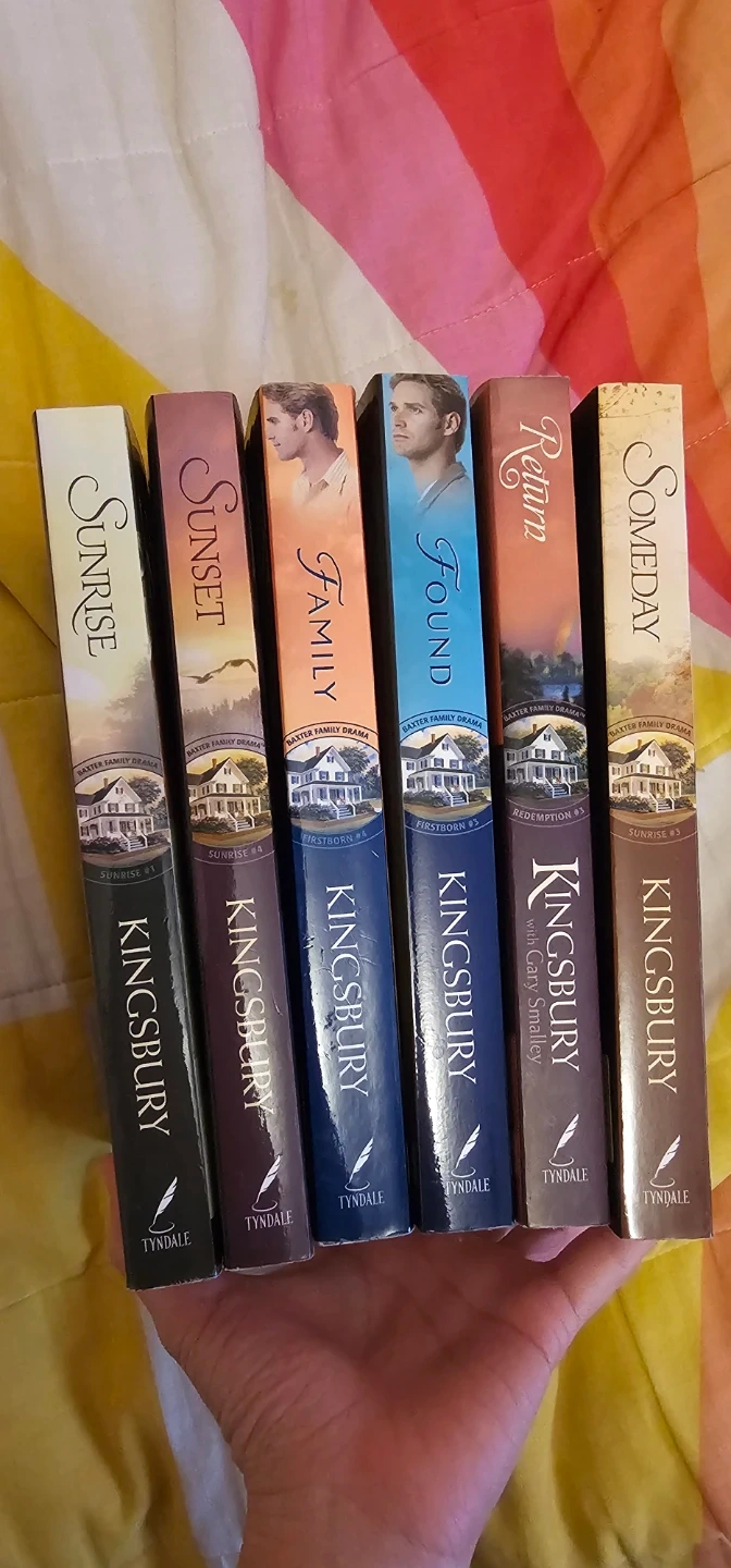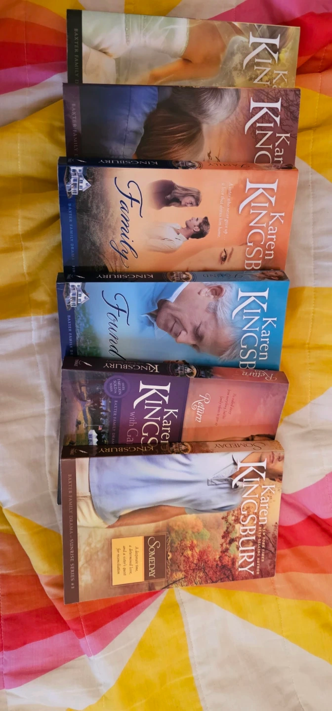 Selling the Baxter Family Drama series by Karen Kingsbury. Includes Sunrise, Sunset, Family, Found, Return, and Someday. Great for anyone who loves heartwarming family stories. Books are in excellent condition, from smoke-free home.