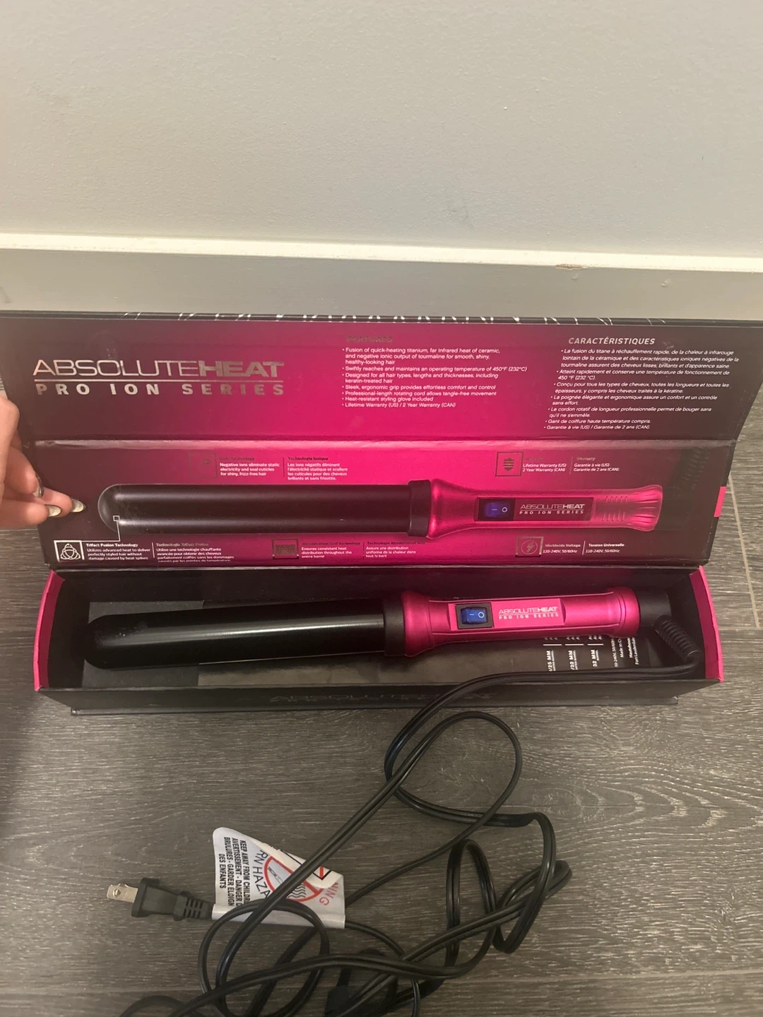 Selling an Absolute Heat Pro Ion Series curling iron! It heats up quickly thanks to its titanium and ceramic fusion, and the tourmaline helps keep your hair smooth and shiny. It reaches 450°F (232°C), perfect for all hair types, even keratin-treated hair. The ergonomic grip and professional-length rotating cord make styling a breeze. Plus, it comes with a heat-resistant styling glove and the original box!