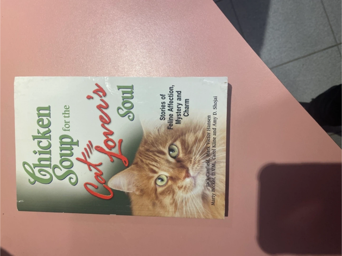 Selling a copy of Chicken Soup for the Cat Lover's Soul. It's a collection of stories about feline affection, mystery, and charm, written by Jack Canfield, Mark Victor Hansen, Marty Becker, Carol Kline, and Amy D. Shojai