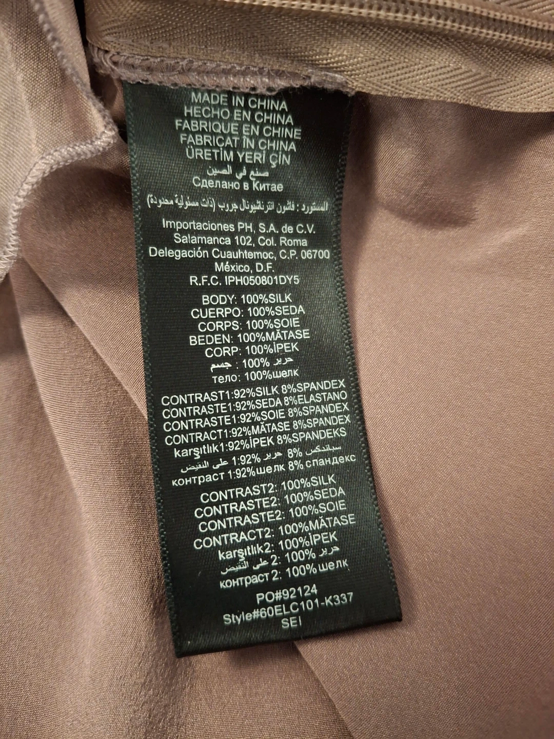 Size zipper on the left.