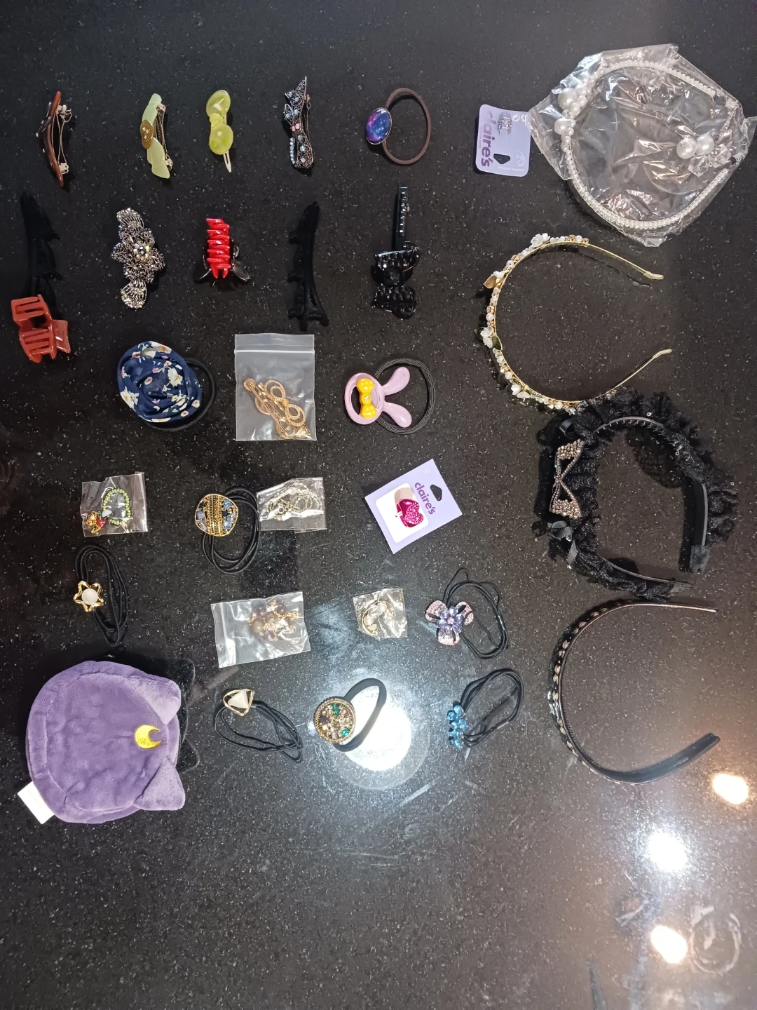 A collection of hair accessories including various headbands and hair ties! There are some Claire's items in the mix as well !All for $25