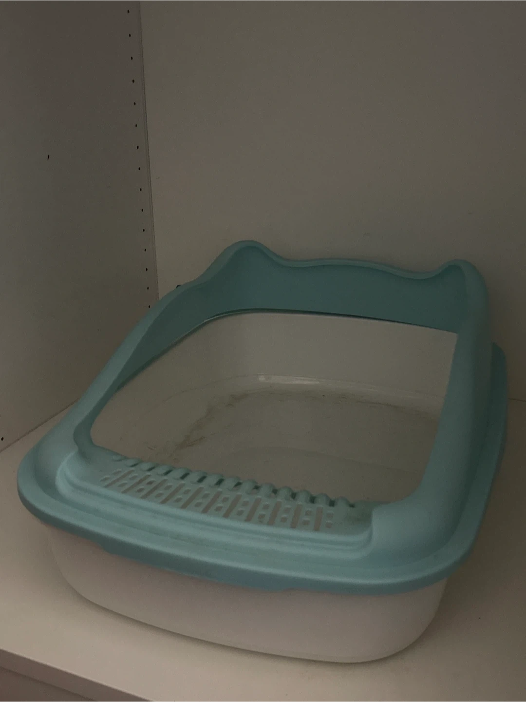 Selling a light blue cat litter box. It's in used condition, but still has plenty of life left! Perfect for your furry friend.