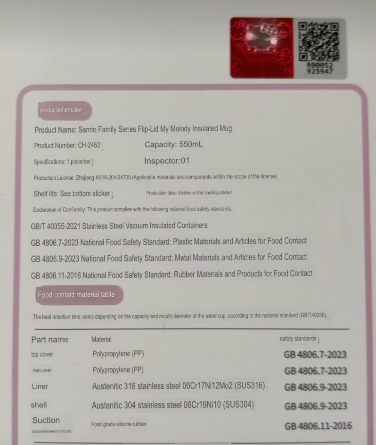 Sanrio My Melody Flip Lid Insulated Mug 550mL