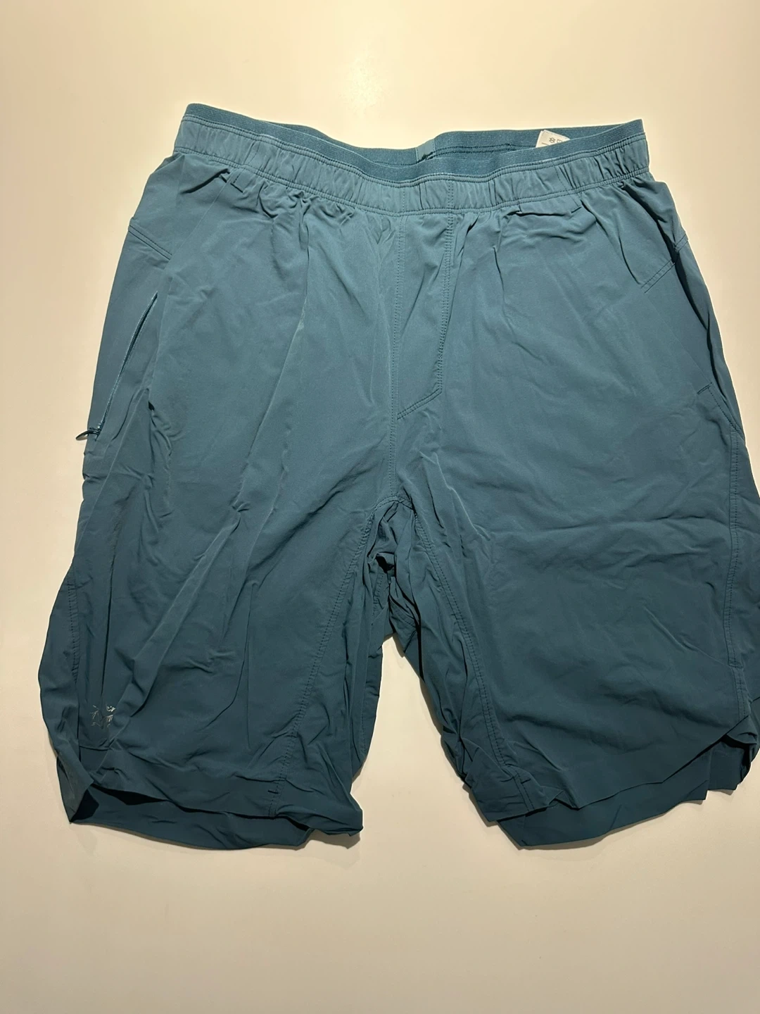 Selling a pair of Arc'teryx Aptin shorts in a nice teal colour! These are size medium and are in great condition. Perfect for running or just casual wear. They feature a comfortable elastic waistband and a few handy pockets too!