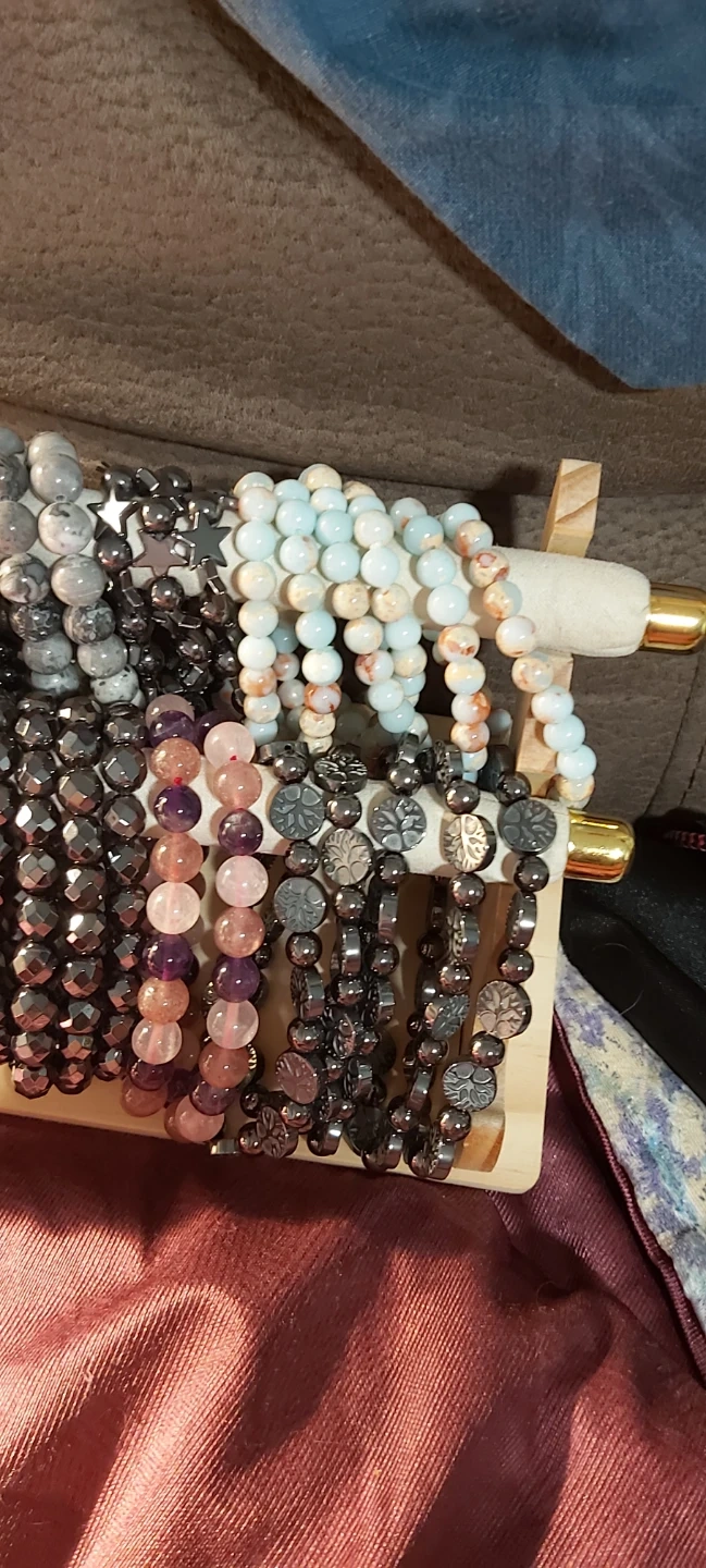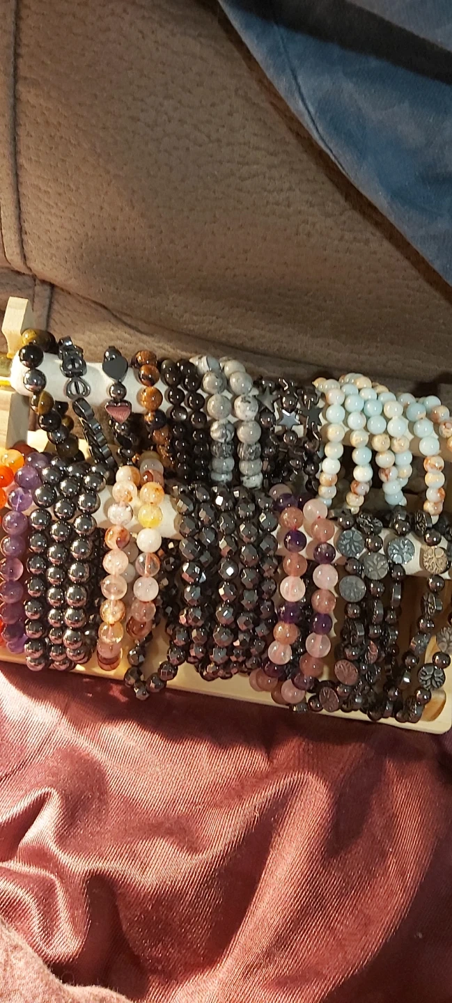 More beautiful bracelets. looking for something specific, I have more. lots of hematite too. These are all natural stone. This selection you see here are all $10 each. Many more to choose from. Pick up in Walkerville area.