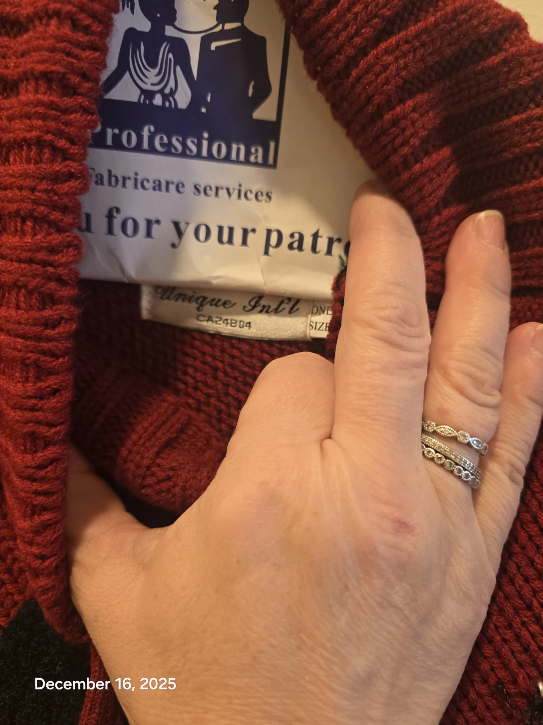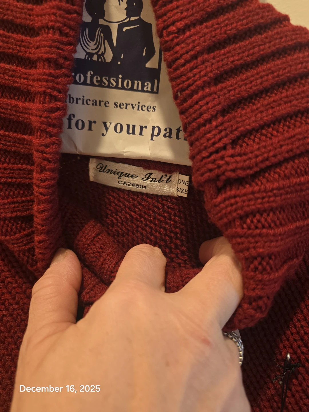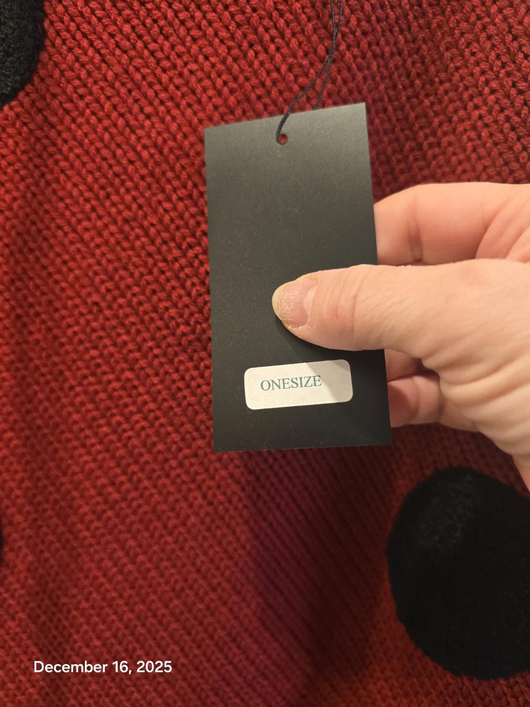 This is a brand new Unique Intl poncho in one size. It's a beautiful red and black colour with a unique design. It would be a great addition to your wardrobe!