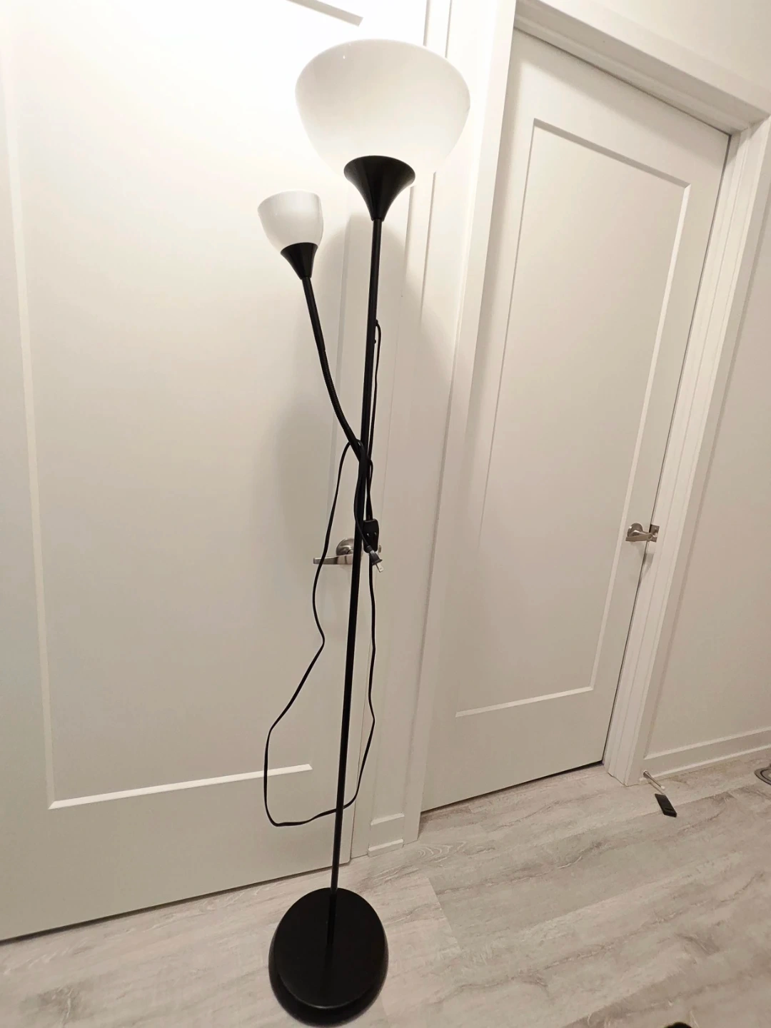 Selling a floor lamp with two lights. It's in great condition and ready to brighten up your space!