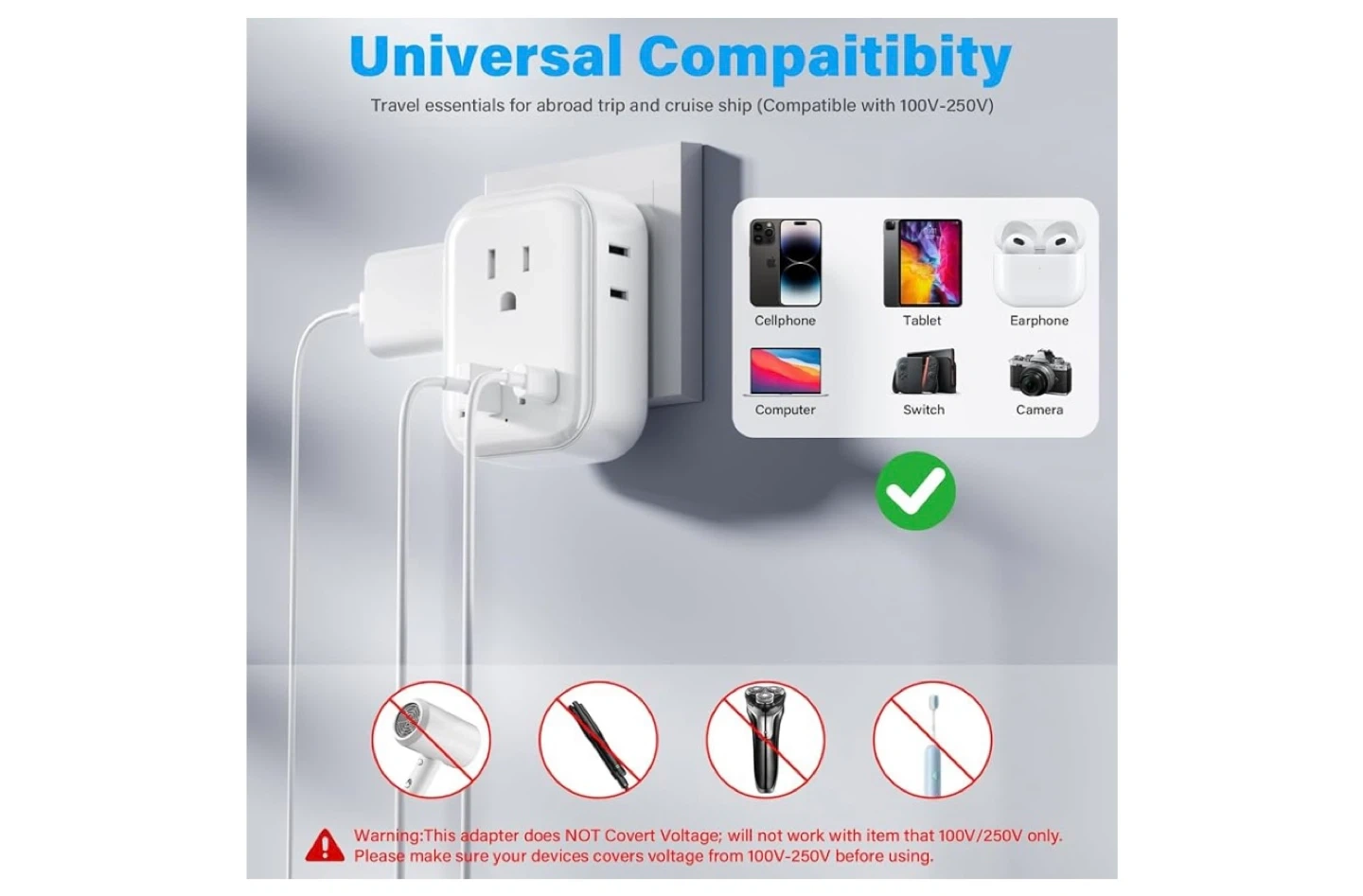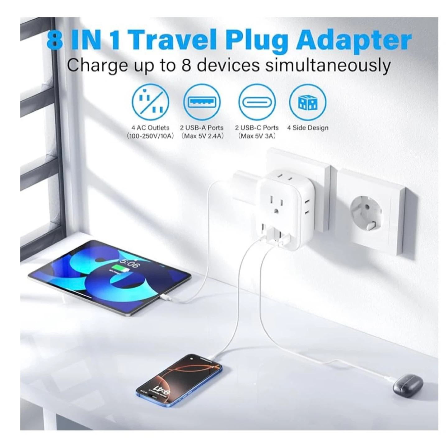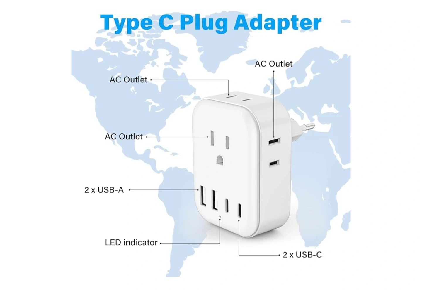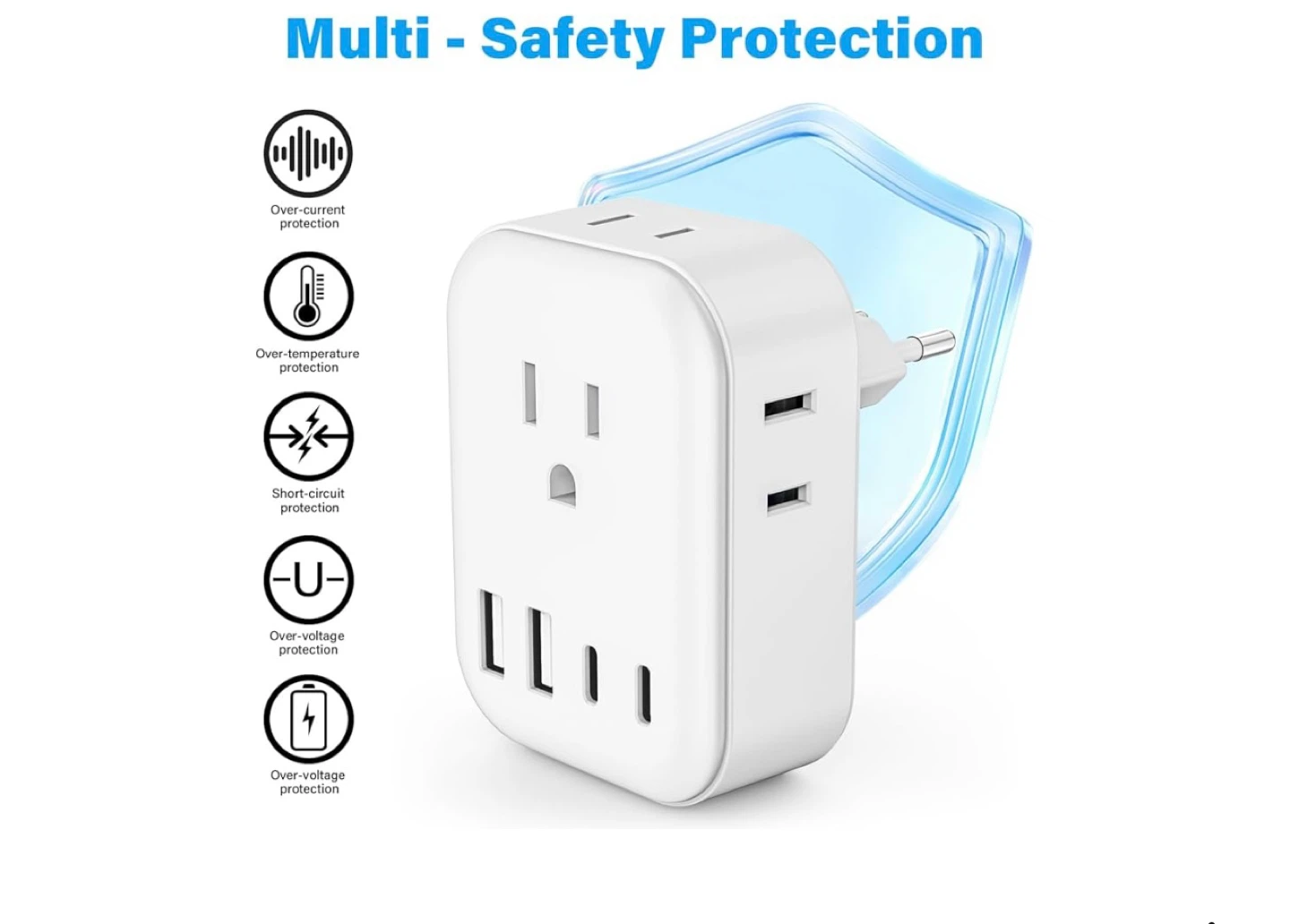 Selling a handy Type C plug adapter! It comes with multiple USB ports, including USB-A and USB-C, so you can charge all your devices at once. It also has an AC outlet for added convenience. This adapter offers multi-safety protection, including over-current, over-temperature, short-circuit, over-voltage protection. Great for travel or home use!
