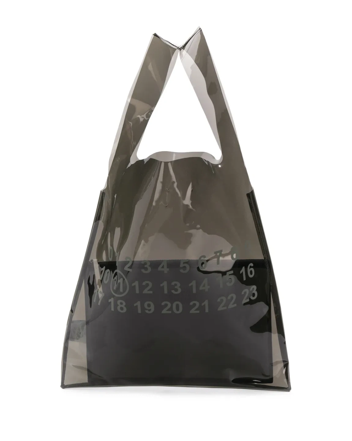 Enamoured with the idiosyncratic; enigmatic Belgian designer Martin Margiela set up his eponymous label in 1988 with a focus on progressive design that reinterprets the social norm. Carry your essential belongings in style with this faded black number print tote bag from Maison Margiela. Featuring top handles, an open top design, a detachable zipped pouch and a signature number print to the front. Made in Italy