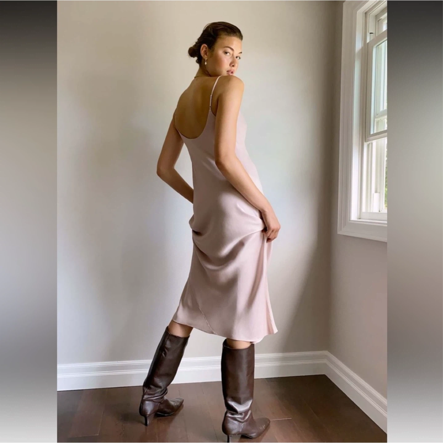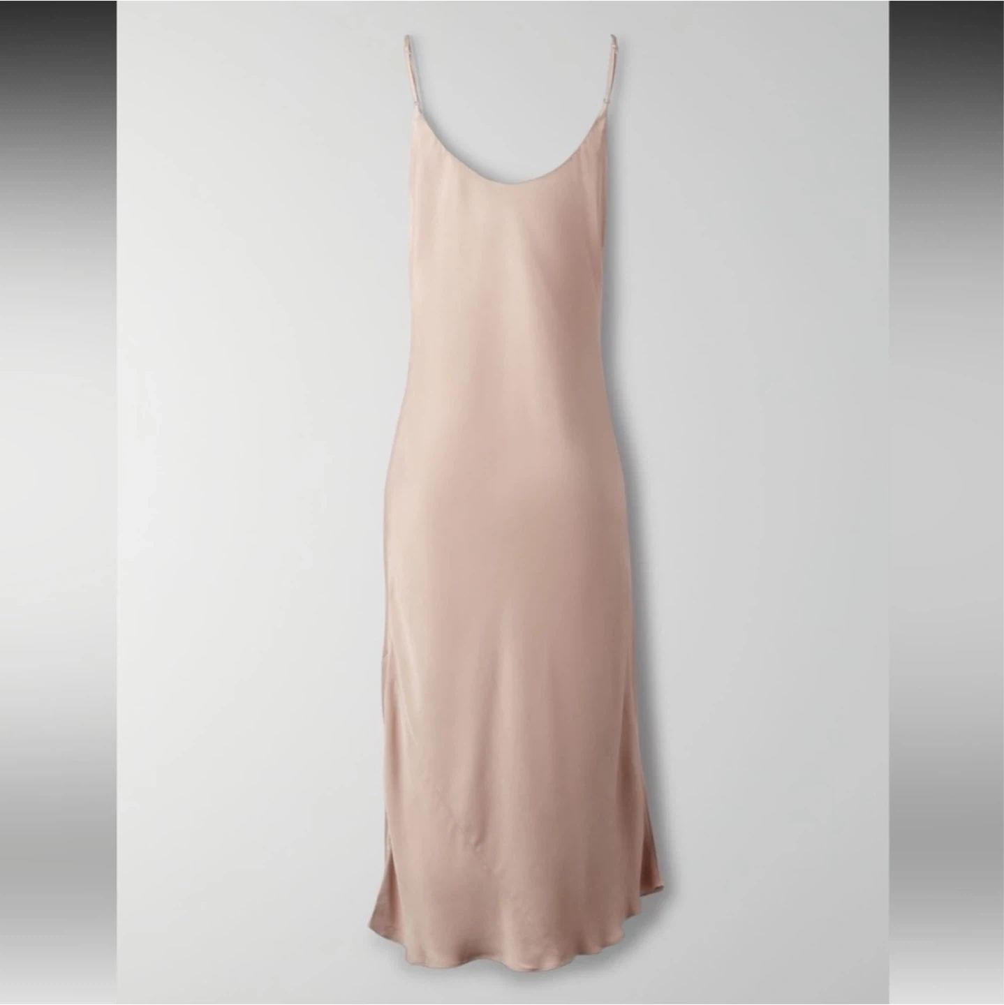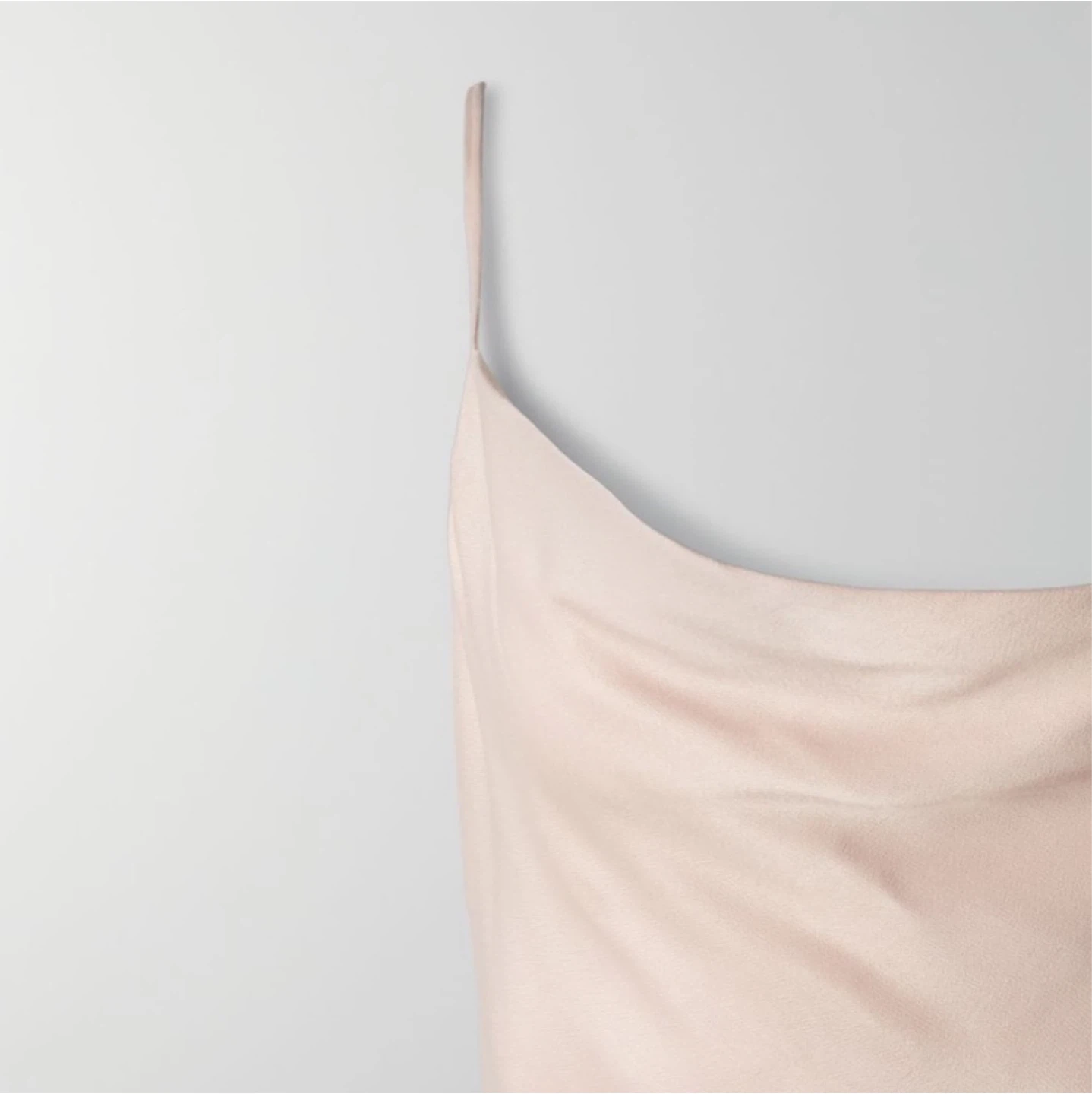 This satin dress with cowl neck and adjustable straps beautifully drapes around the body. So classy!
