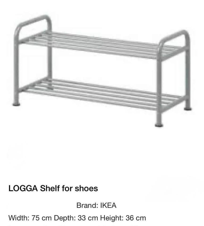 • Model: IKEA Logga 2-Tier Shoe Rack (metal)