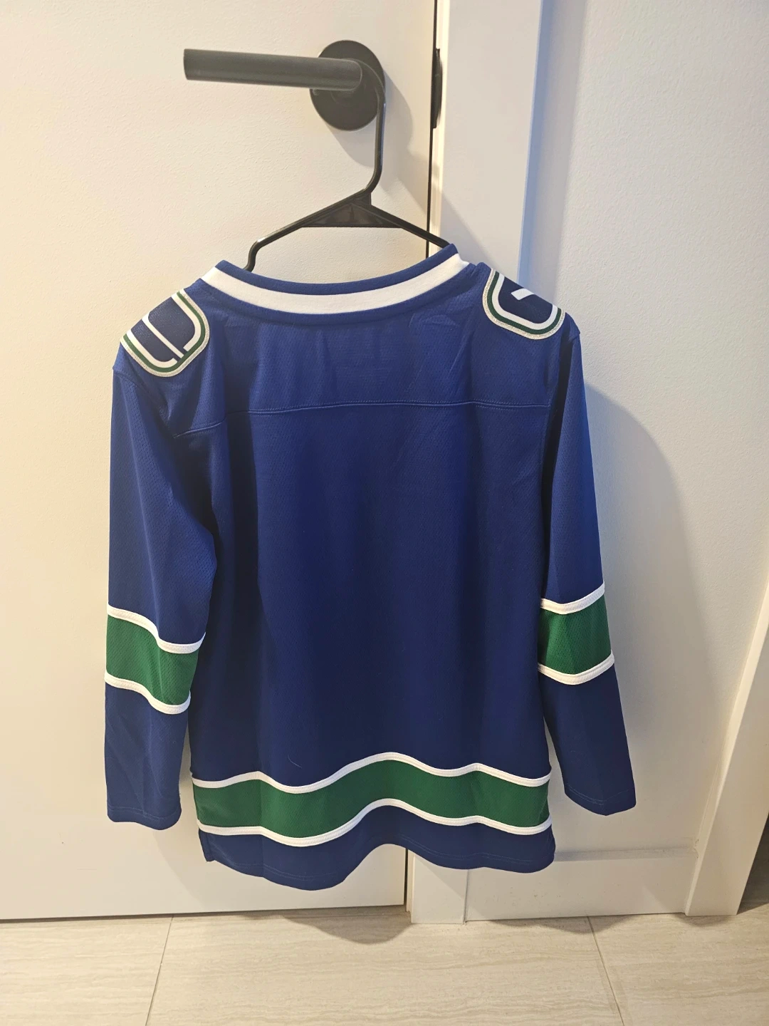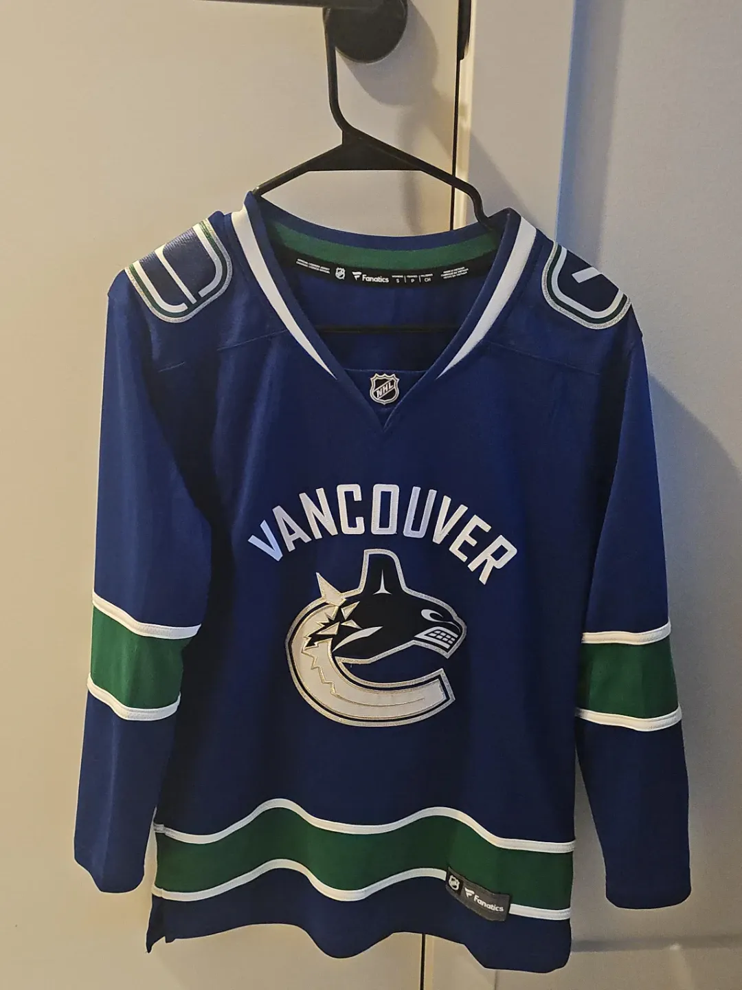 Selling a Women's Small Canucks NHL jersey by Fanatics! It's in great shape and ready for a new fan. The colours are vibrant and the logo is in excellent condition. Perfect for showing your team spirit at the next game or just wearing around town. Must pick up at my location.