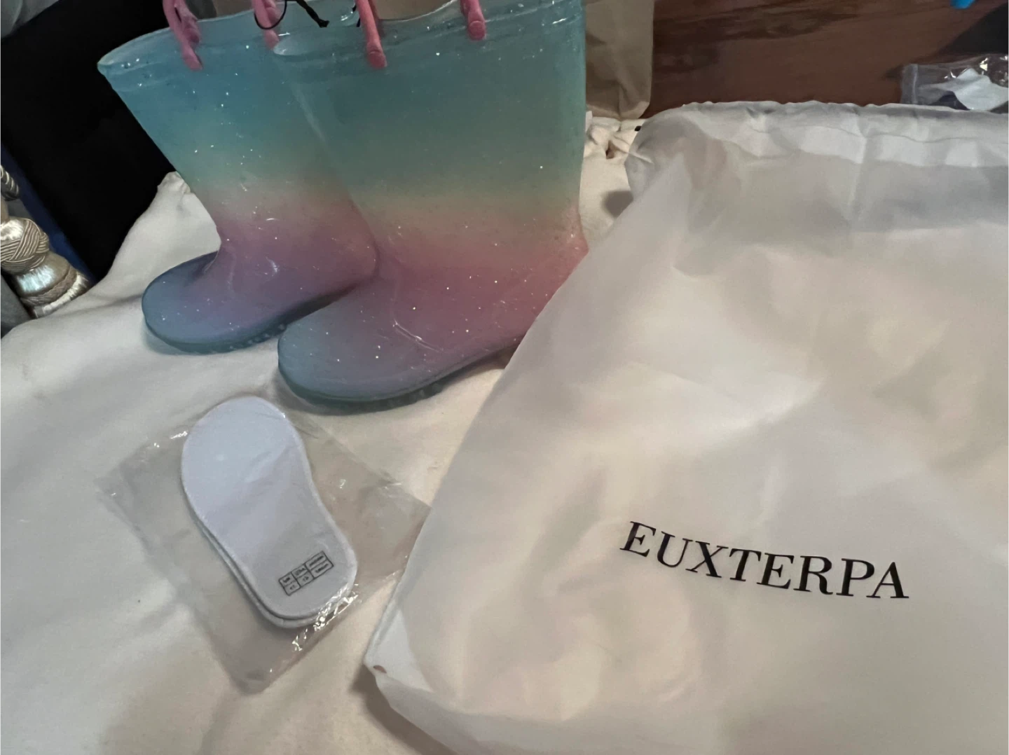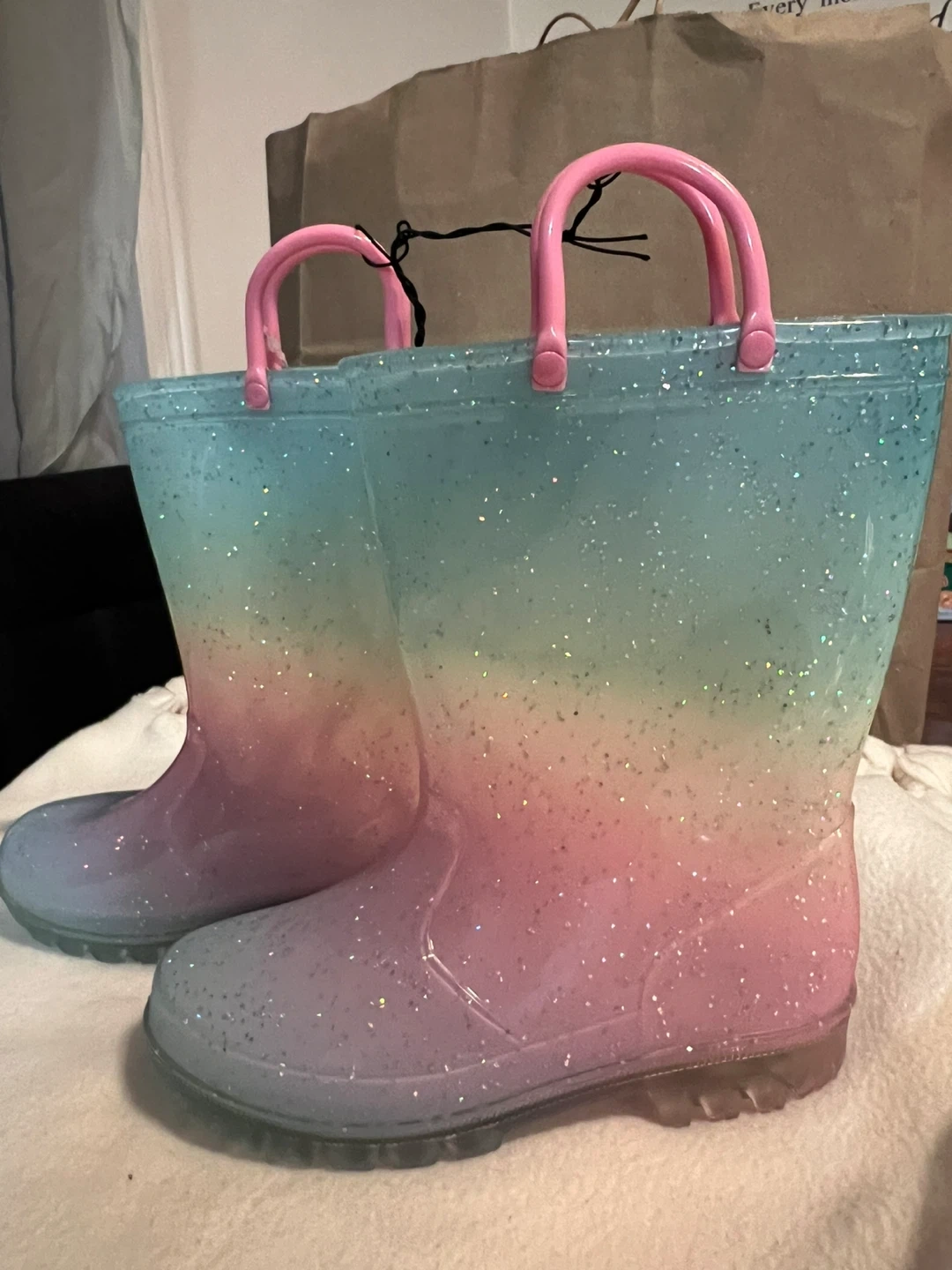 These EUXTERPA light-up rain boots are perfect for kids! They're a size 12 and come with a bag and insoles