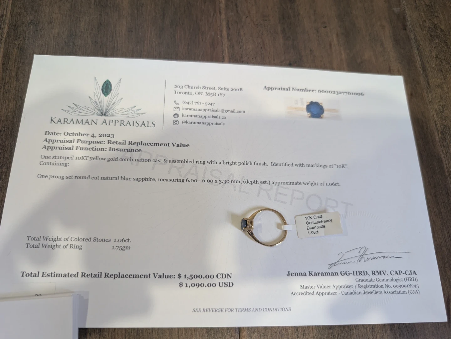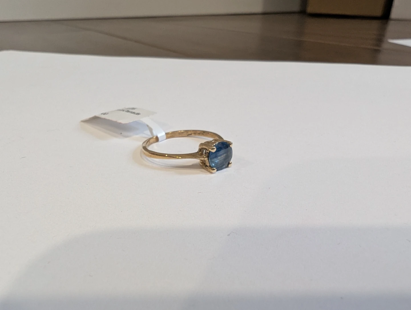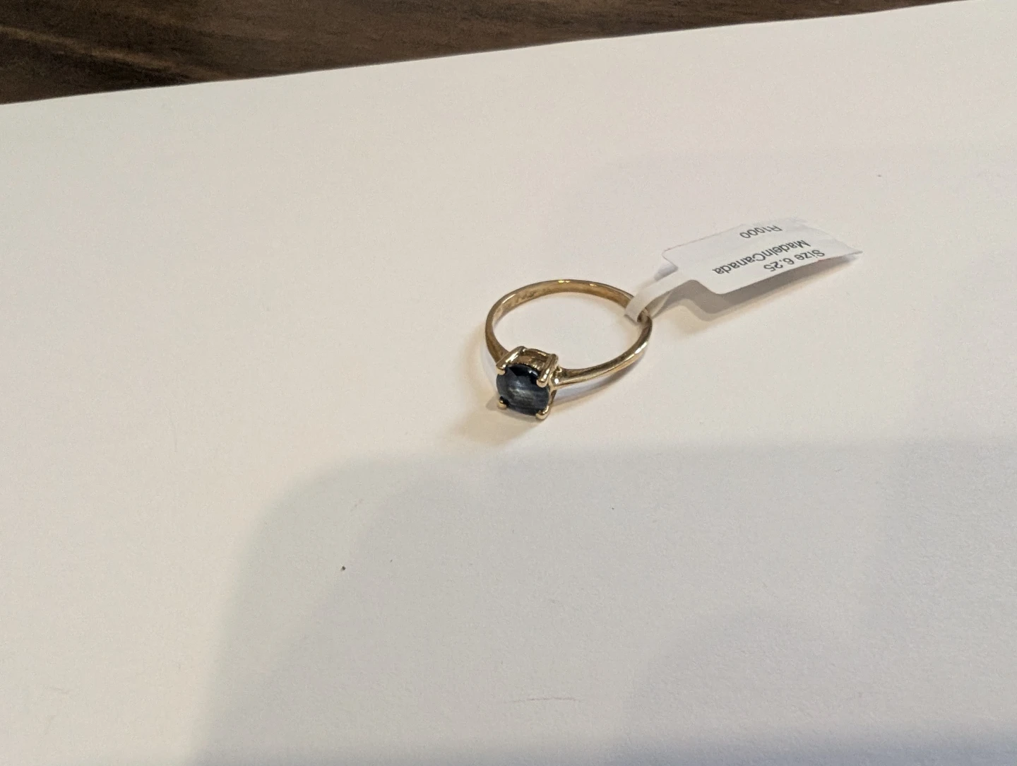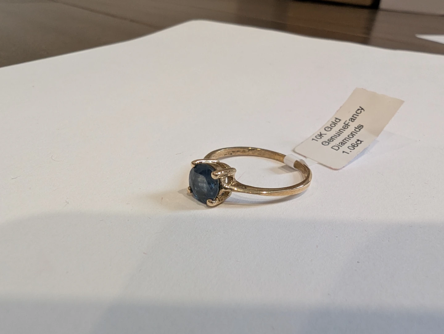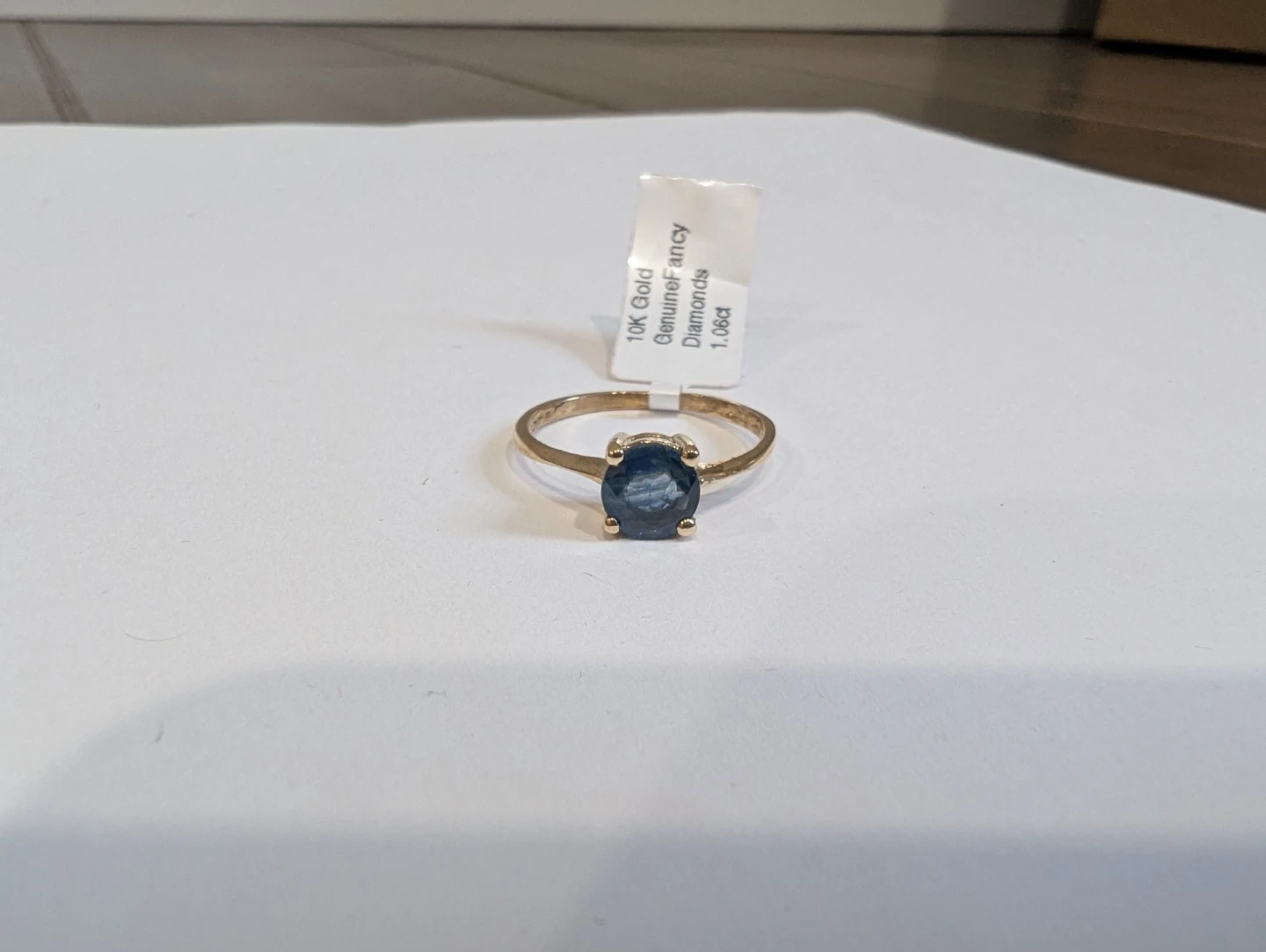 Brand new 10kt yellow gold natural blue sapphire ring for sale. One prong set round cut natural blue sapphire stone, 1.06ct carats. Ring size 6.25, made in Canada, September birthstone. Retail value $1500, selling for $470 FIRM. Comes with appraisal.