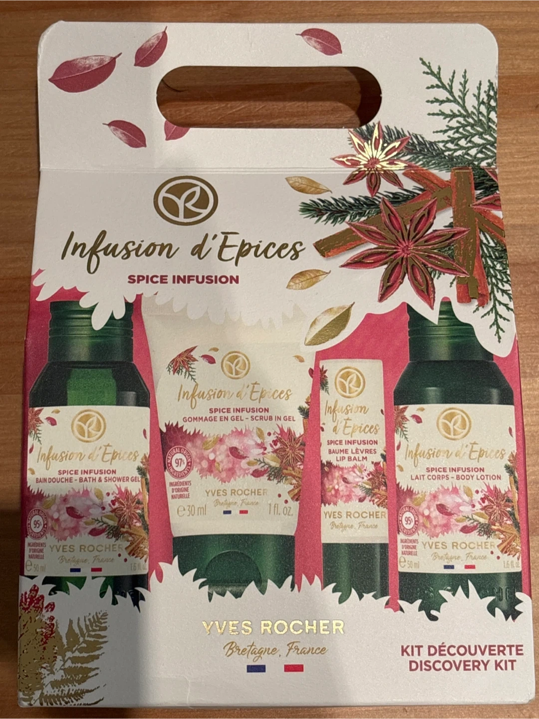 Selling a Yves Rocher Infusion d'Epices Discovery Kit! It includes a bath & shower gel, scrub in gel, lip balm, and body lotion. Perfect for gifting or treating yourself