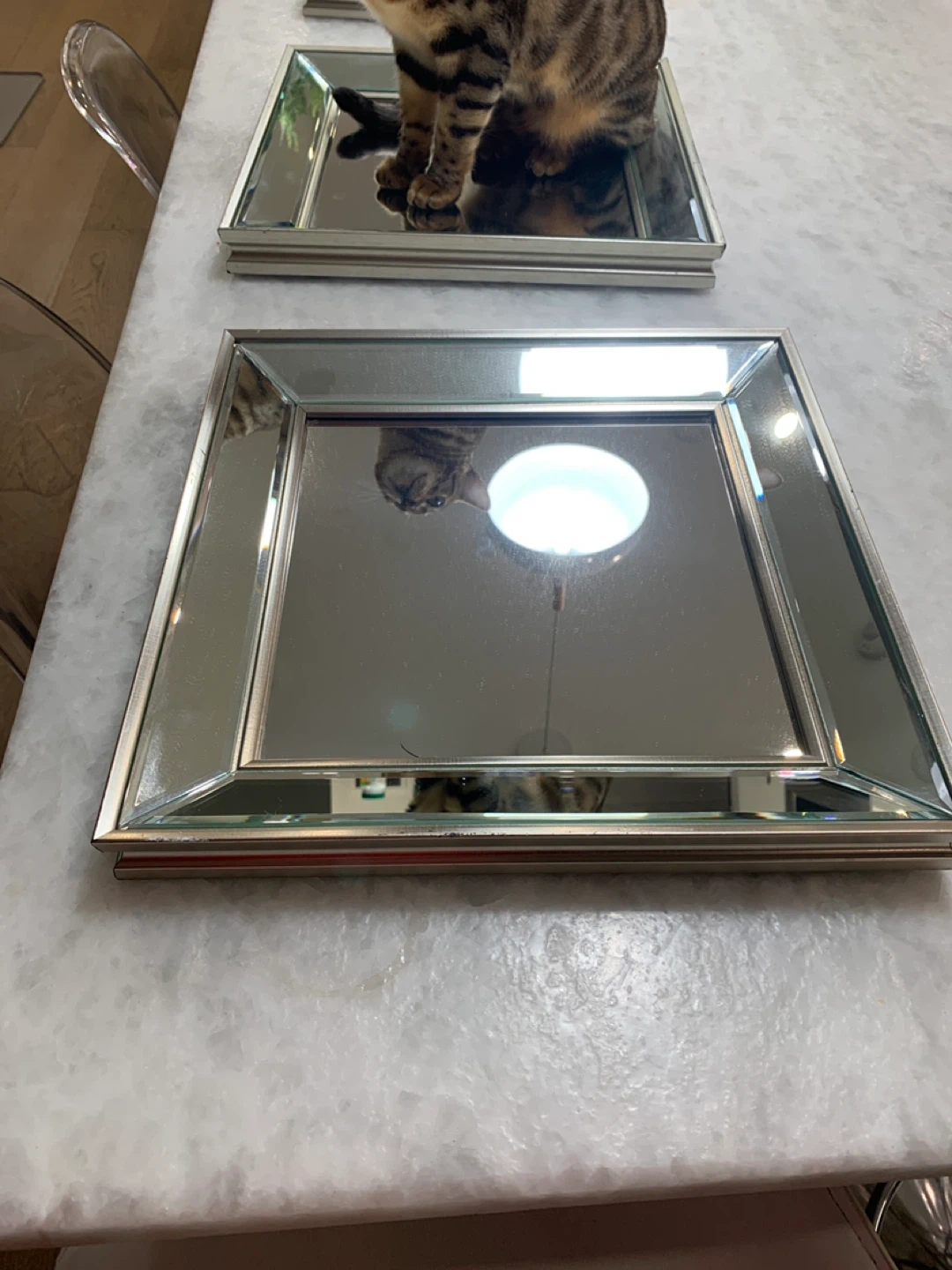 Selling a silver framed mirror! It's in good condition and would look great in any room. There are a couple of minor scratches on the frame, but nothing too noticeable. Perfect for adding a touch of elegance to your home decor!