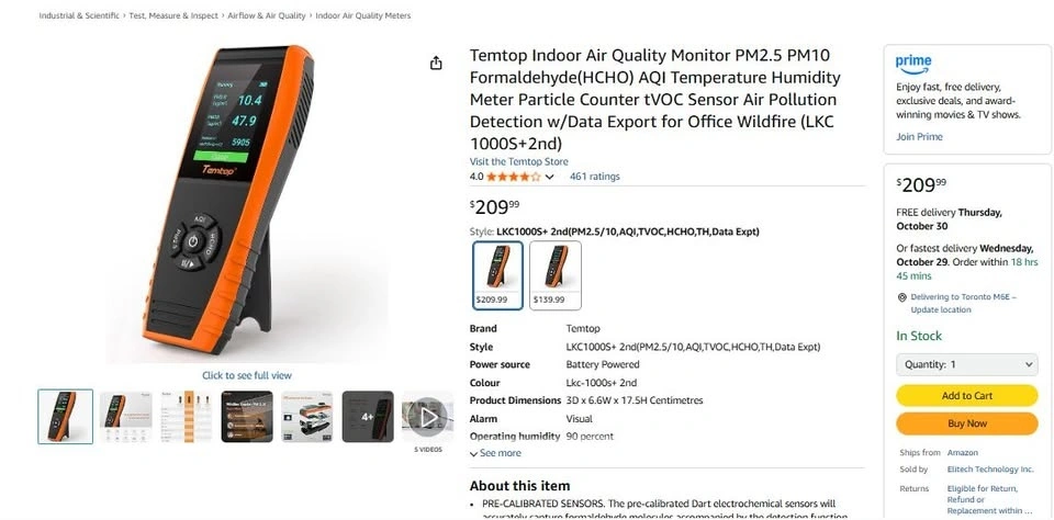 Temtop Air Quality Monitor PM2.5 PM10 Formaldehyde AQI