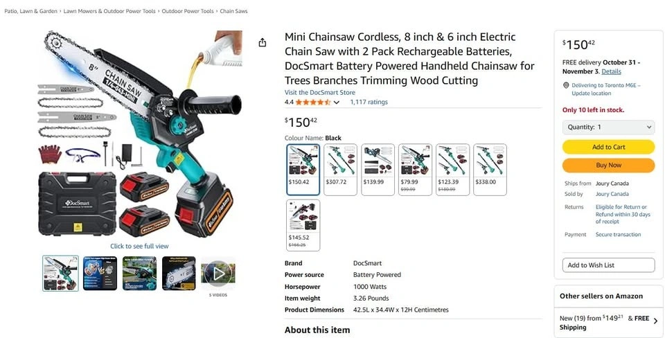 Mini Chainsaw Cordless, 8 inch & 6 inch Electric Chain Saw with 2 Pack Rechargeable Batteries, DocSmart Battery Powered Handheld Chainsaw for Trees Branches Trimming Wood Cutting