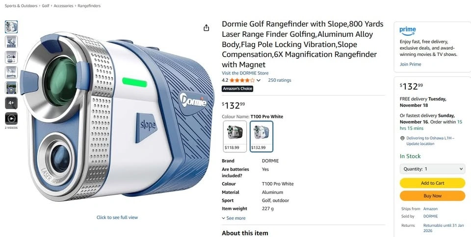 Dormie Golf Rangefinder with Slope, 800 Yards Laser