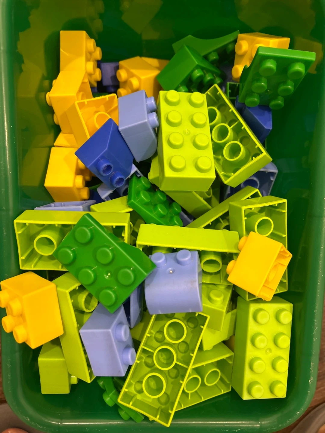 Selling a collection of Hamley blocks in various colours like yellow, blue, and green. These are perfect for toddlers and young children to develop their creativity and motor skills. They're in great condition and ready for a new builder!