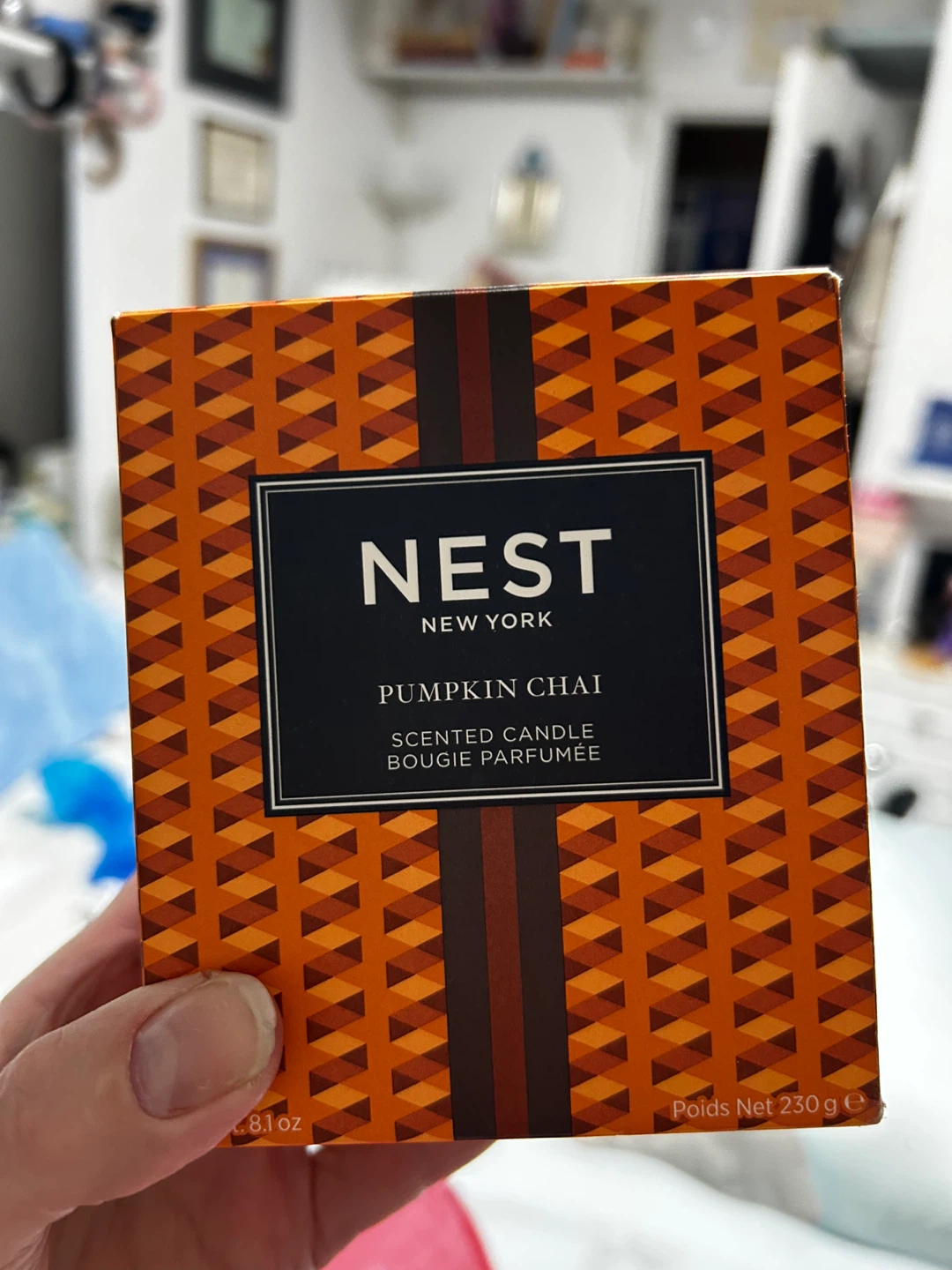 Selling a NEST New York Pumpkin Chai scented candle! It's in great condition and ready to fill your home with a cozy autumn fragrance. The candle has a net weight of 230g / 8.1 oz