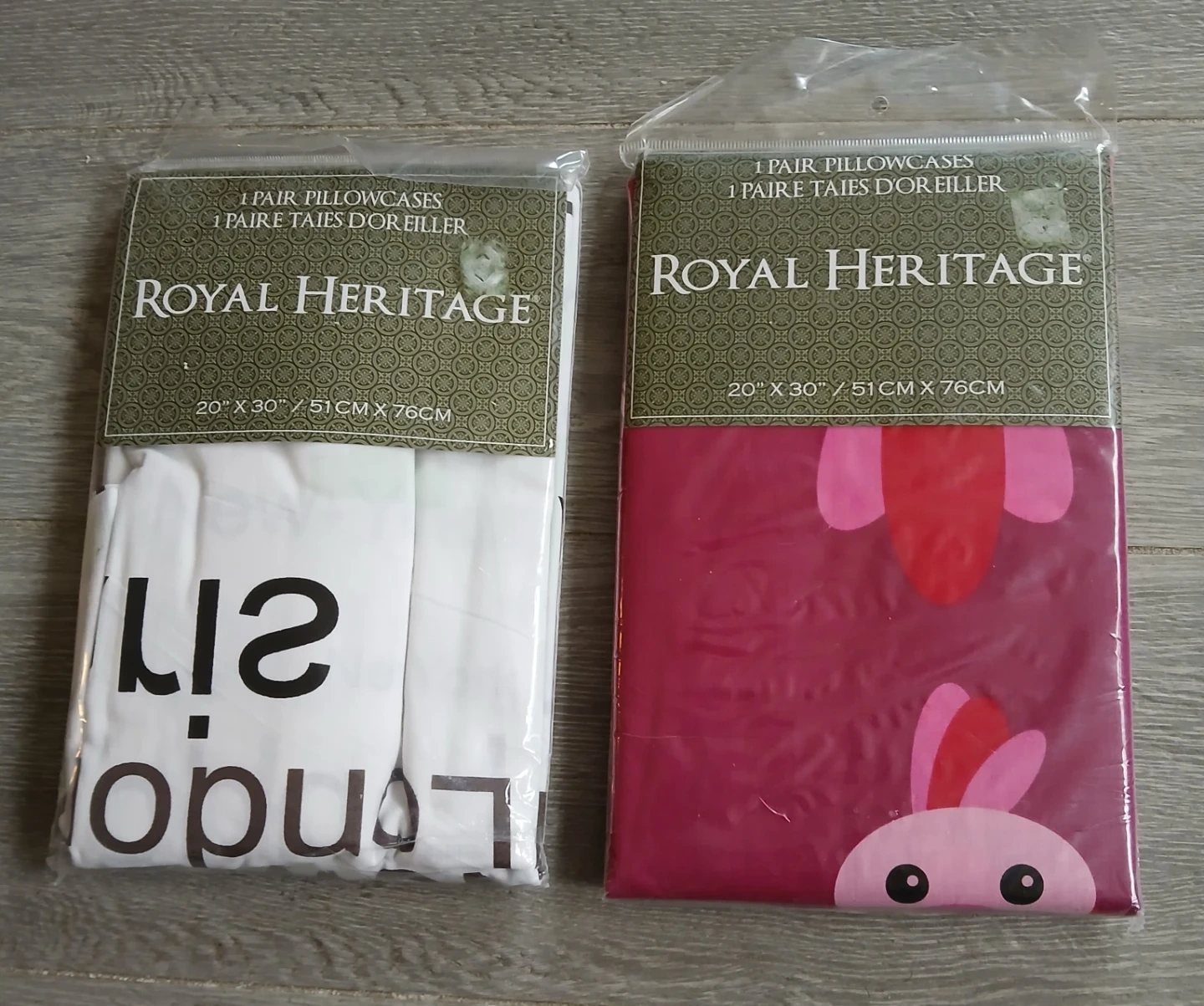Selling two sets of Royal Heritage pillowcases, still in their original packaging! Each set contains a pair of pillowcases. They are size 20" x 30" / 51cm x 76cm.