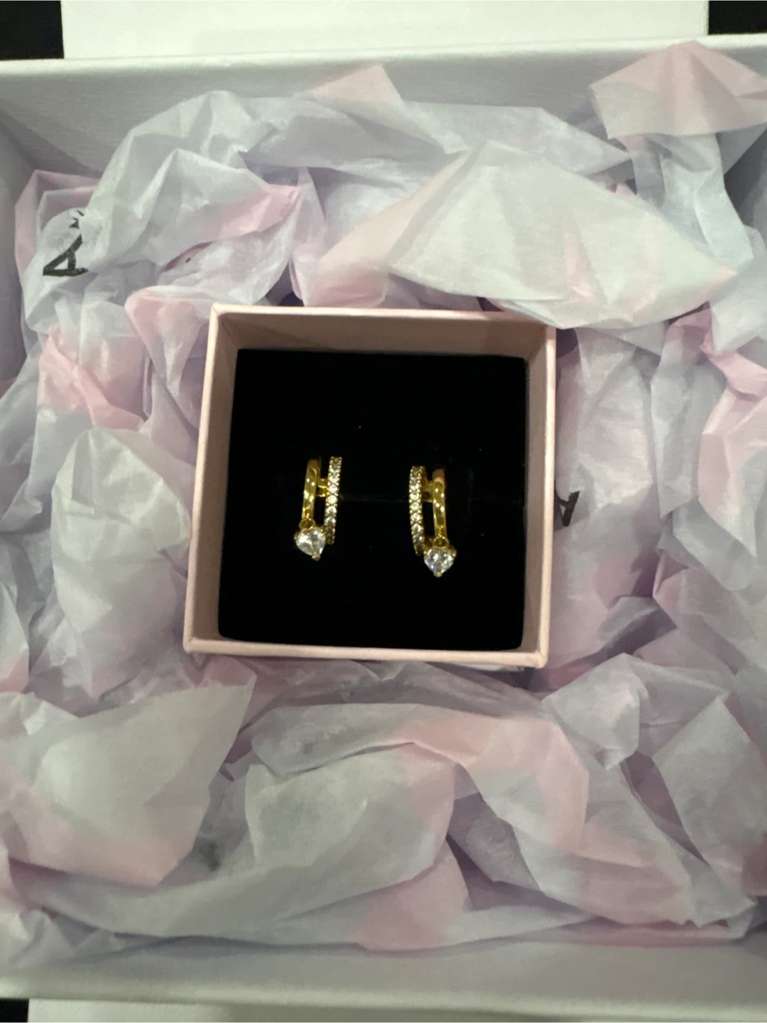 Selling a pair of Pandora gold heart dangle hoop earrings! These are in great condition and come with the original box. Only worn once.