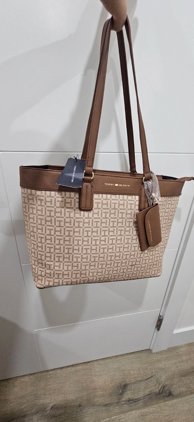 Tommy Hilfiger tote bag in new excellent condition with tag! The bag features a stylish pattern and comes with an attached small pouch. Perfect for everyday use!