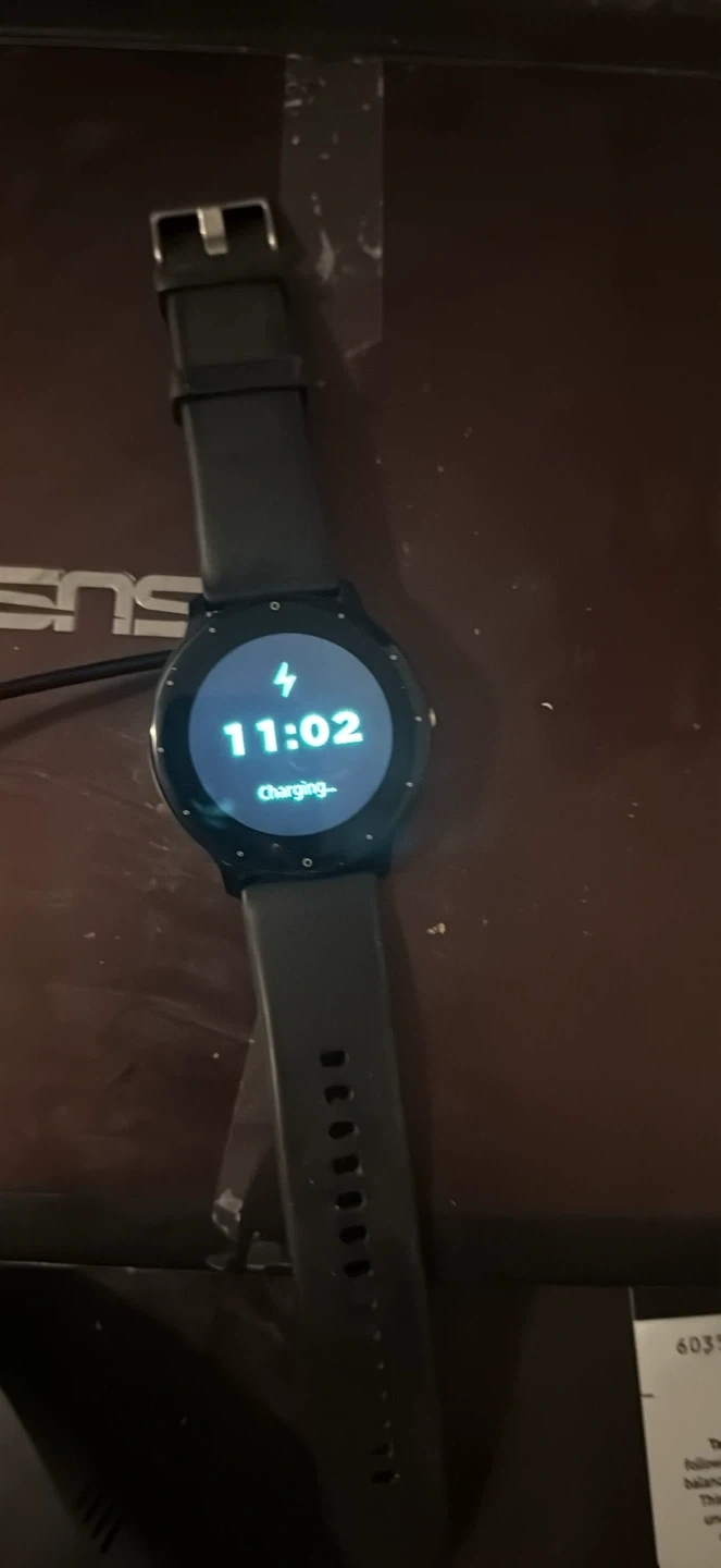 Selling a smartwatch in black. It appears to be charging in the photo and has a classic watch band style. Great for tracking your fitness or just telling time!