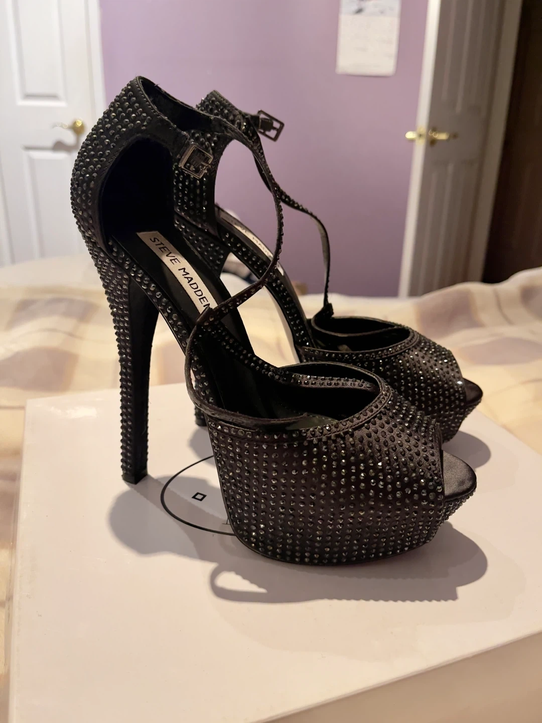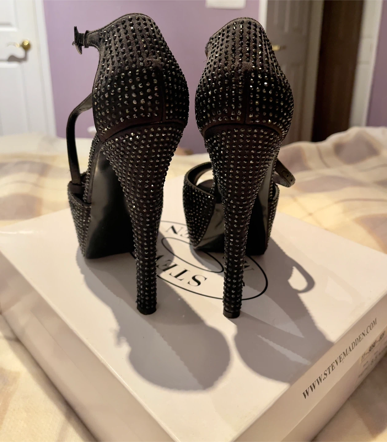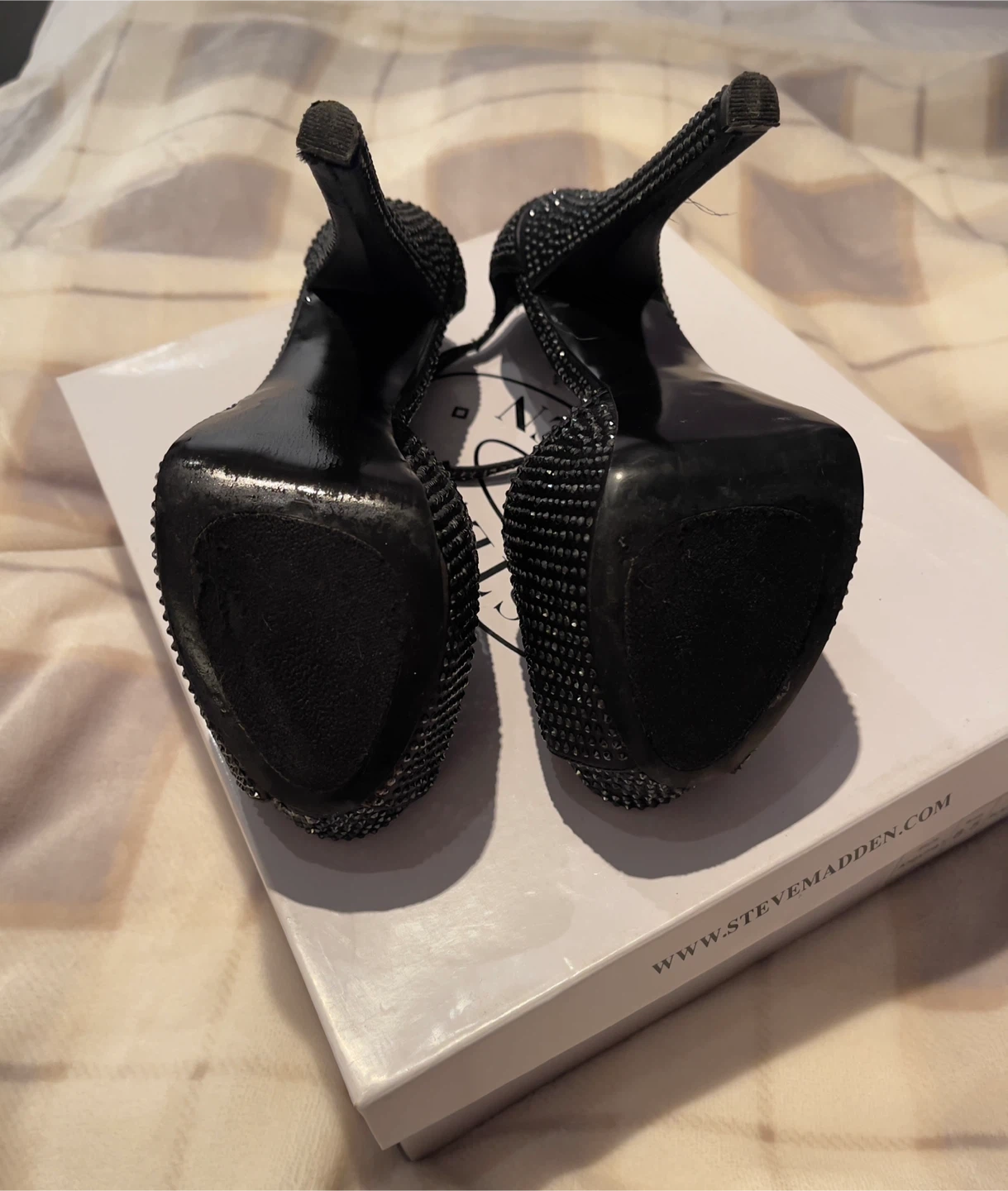 These Steve Madden heels are in great condition and come with the original box! They are black with a sparkly, studded design. Perfect for a night out!