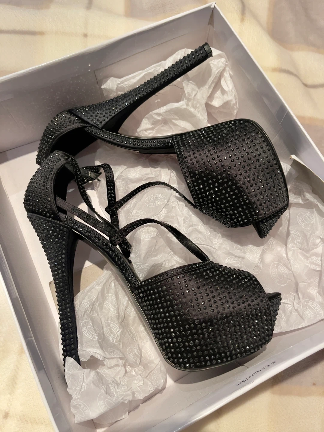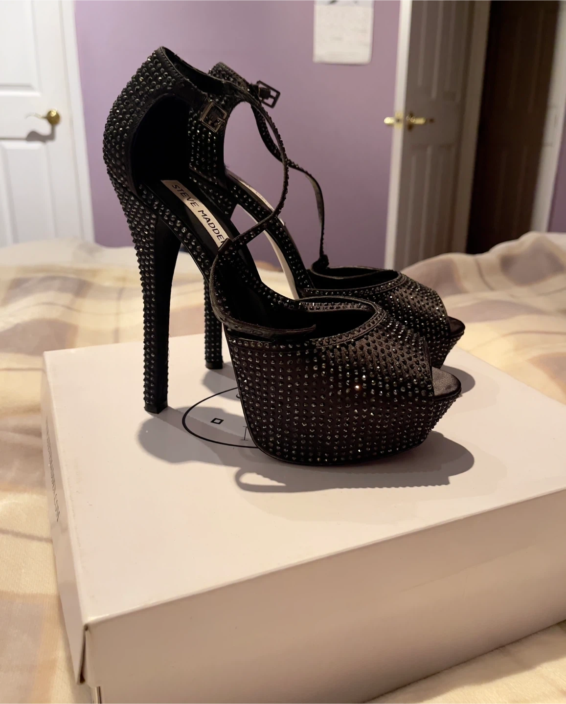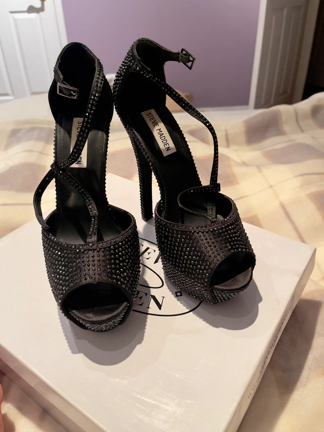 These Steve Madden heels are in great condition and come with the original box! They are black with a sparkly, studded design. Perfect for a night out!