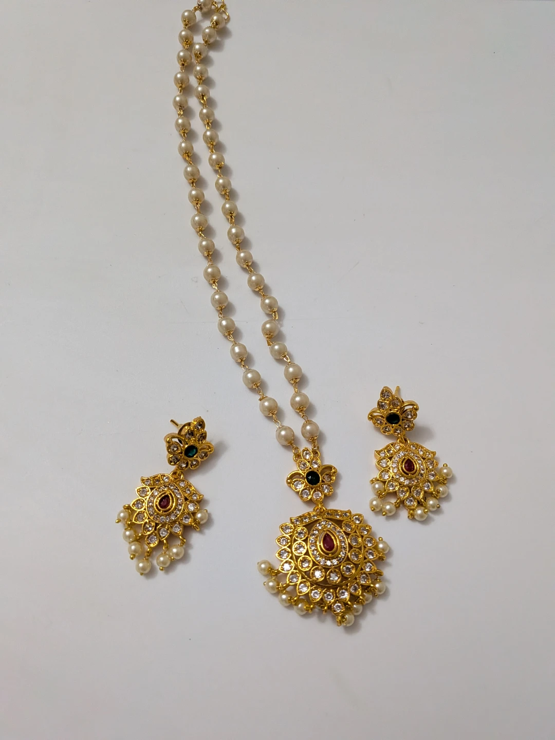 Selling a beautiful pearl necklace with matching earrings! The set features a gold-tone finish with pearl accents and sparkling stones. It's in great condition and ready to add a touch of elegance to any outfit