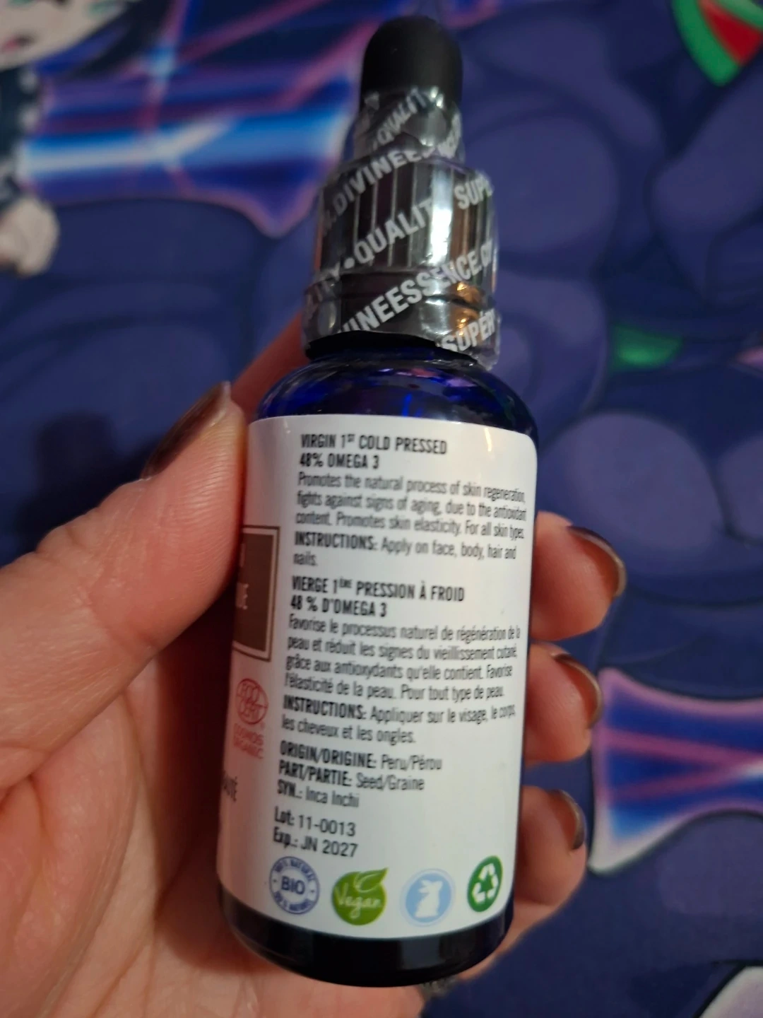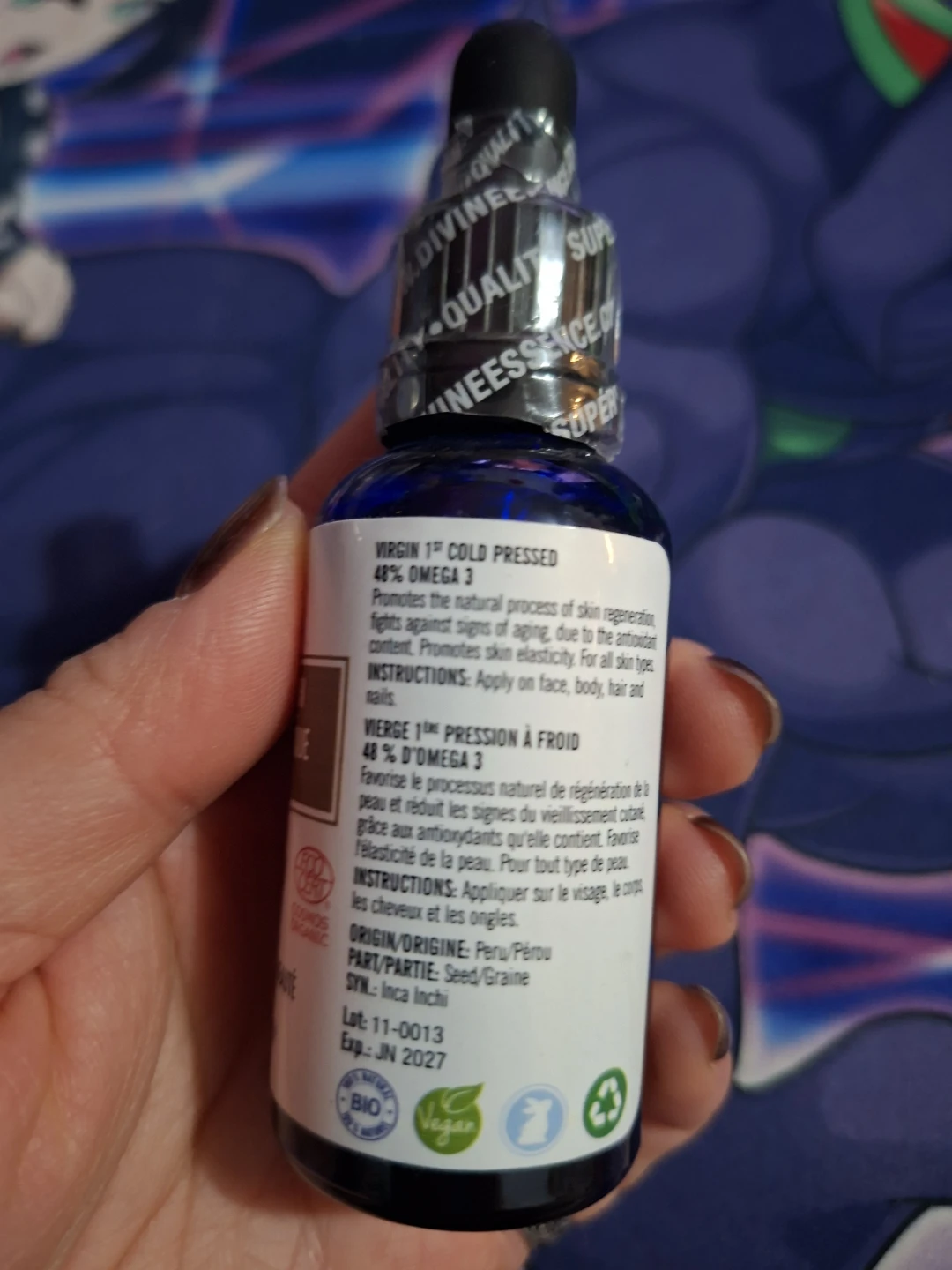 Selling a bottle of Divine Essence Organic Sacha Inchi Beauty Oil. It's a beauty oil that's anti-aging and antioxidant. Contains 30ml/1 fl oz. Expiry date is June 2027.