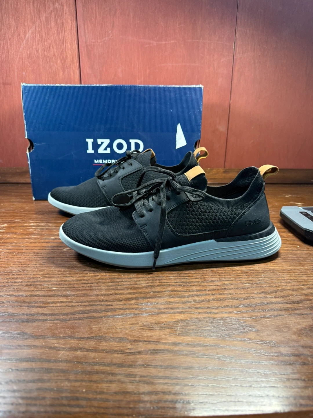 Check out these IZOD “Bannister” men’s lightweight textile sneakers in size 11 US! These sneakers are in good condition and ready for your next adventure. They feature a sleek design and comfortable fit, perfect for everyday wear.