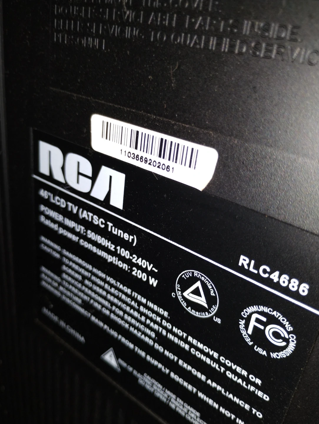 Selling a 46-inch RCA LCD TV, model number RLC4686! It's in good working condition and would be great for a spare room or for gaming