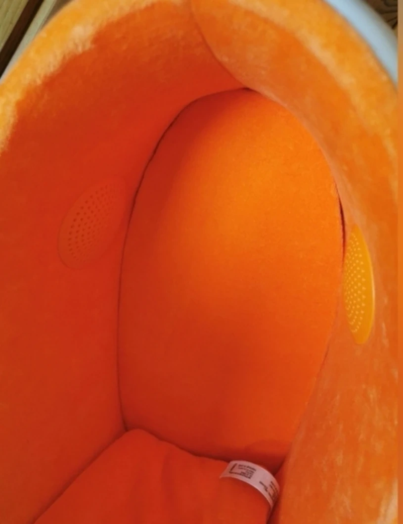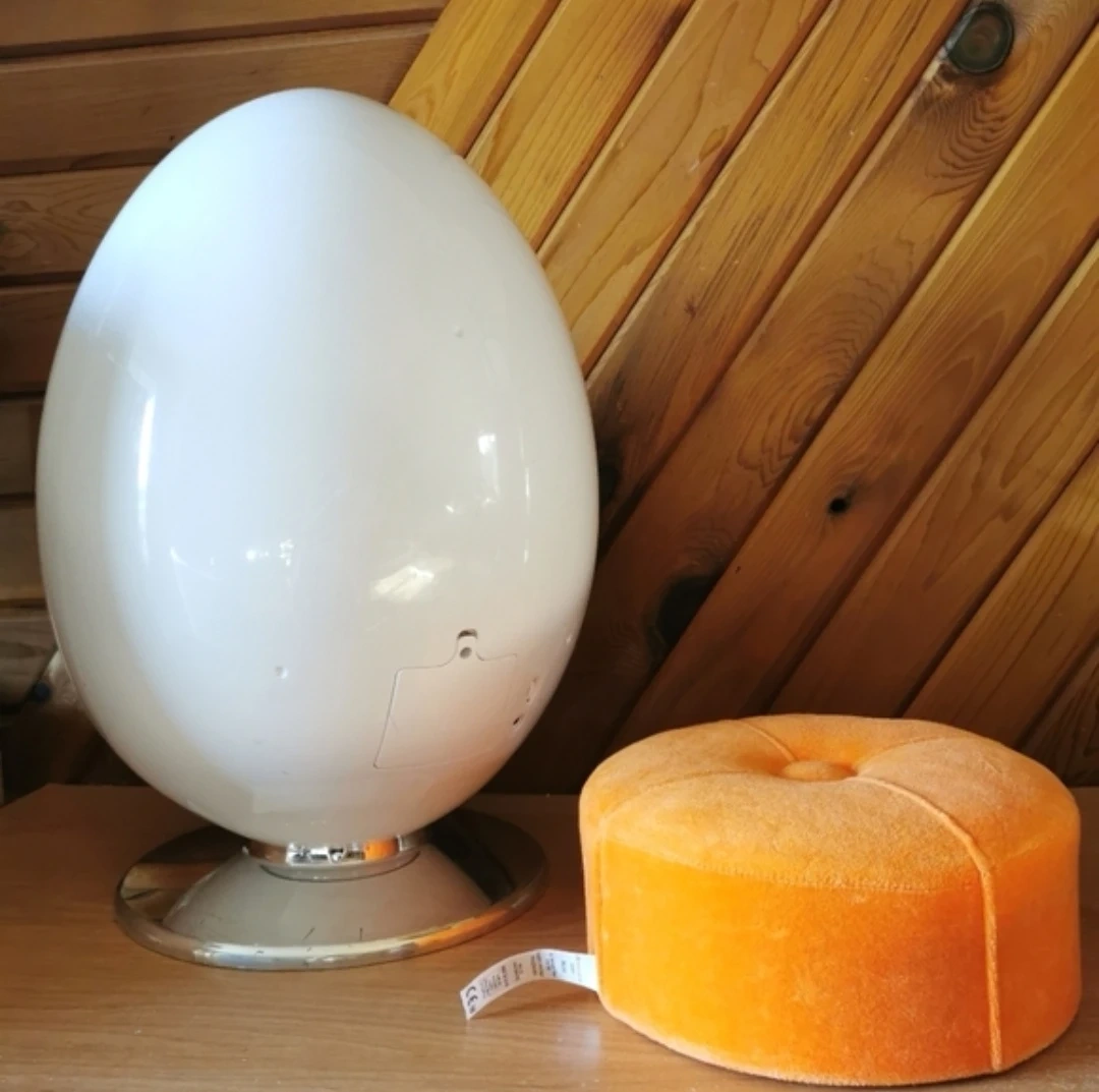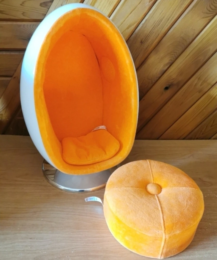 Beautiful Egg Chair Set that includes egg chair with speakers and ottoman.