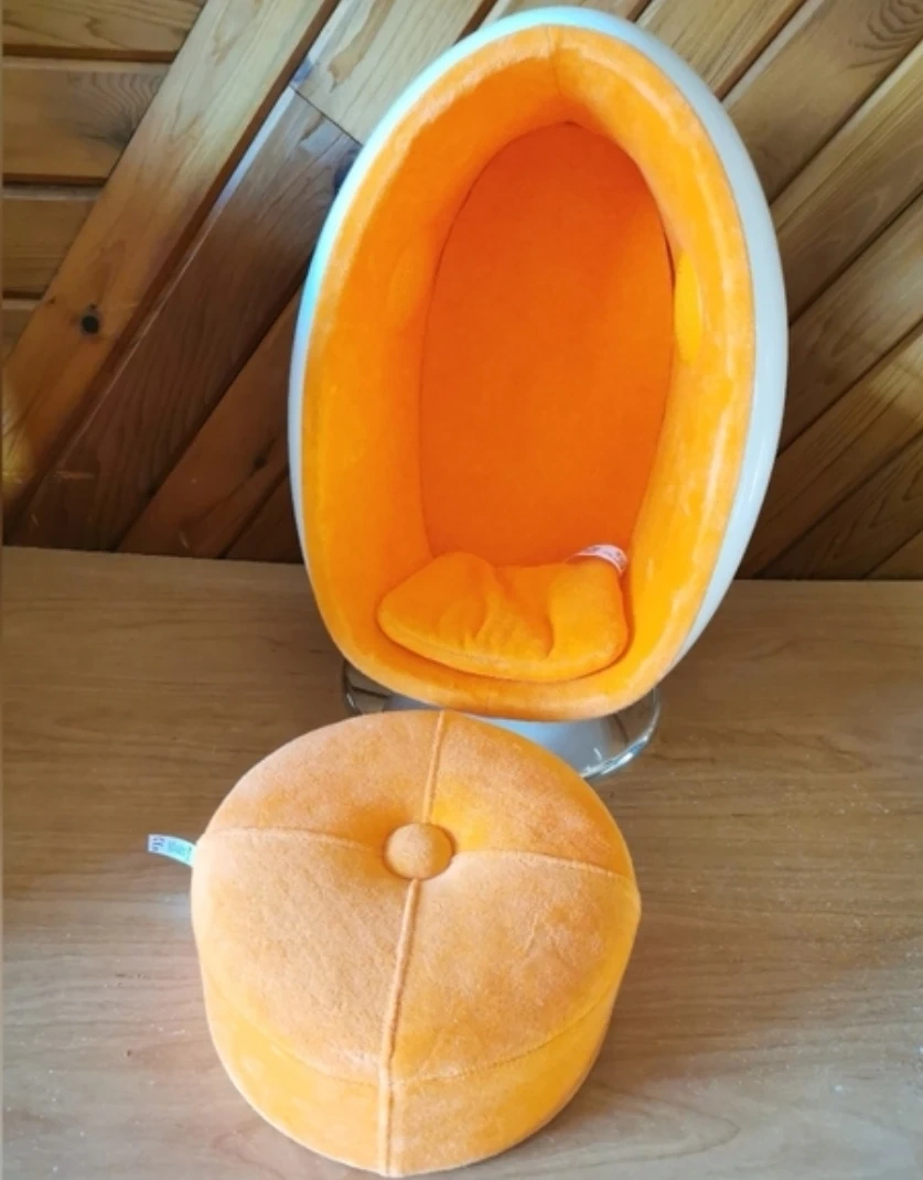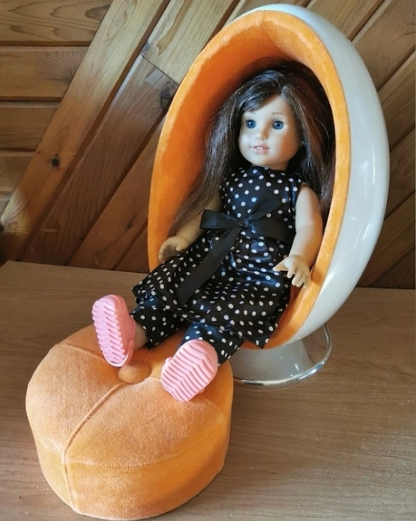 Set is in excellent pre-owned condition, egg is about 20 inch tall and fits any 18 inch tall American Girl Doll, ottoman is about 8x8